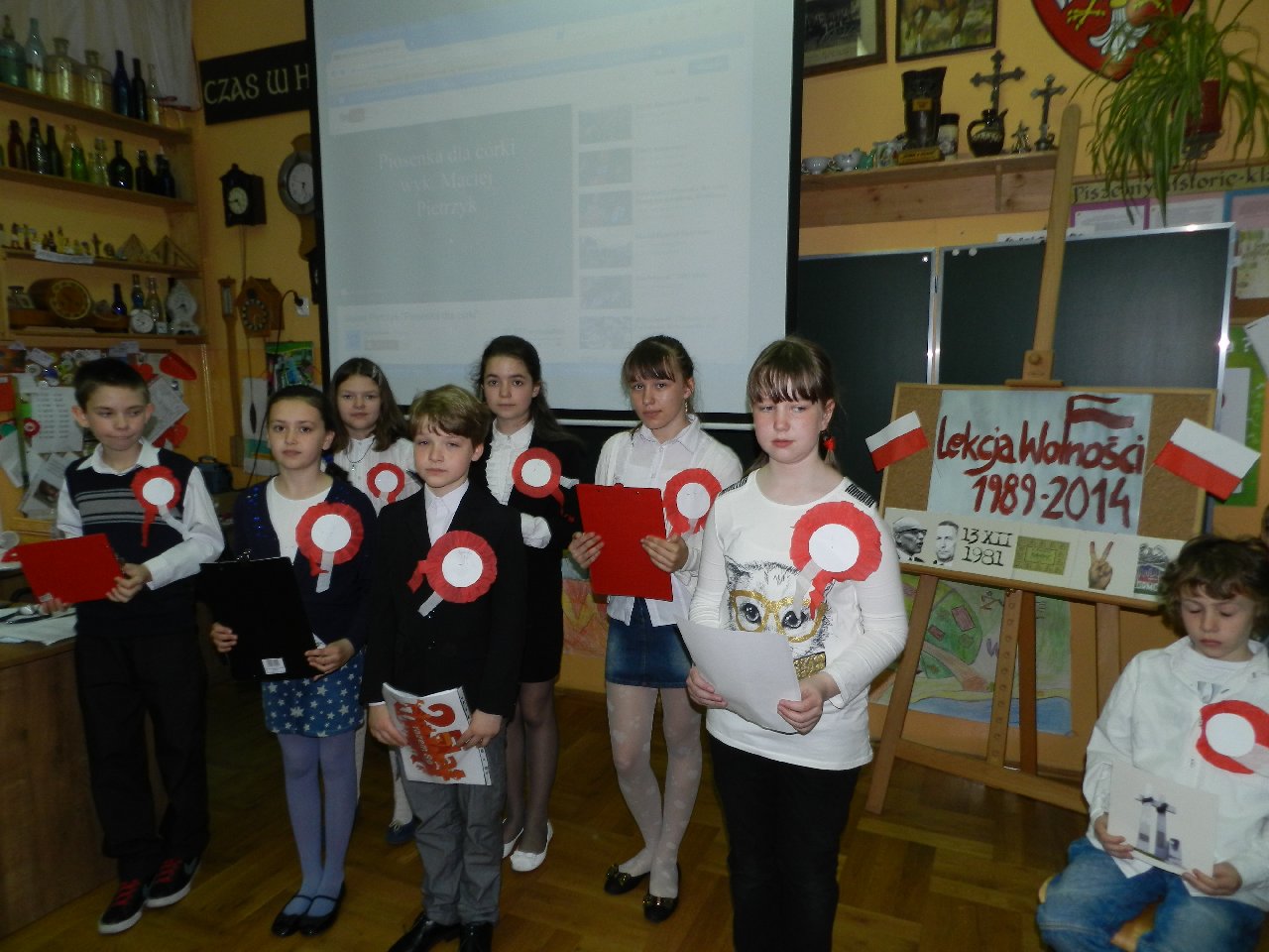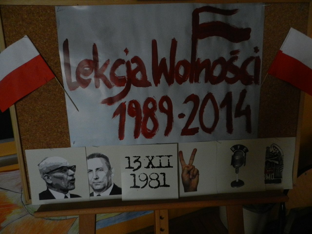 W dniu 3 czerwca w naszej szkole ruszyła akcja MEN „ Lekcja Wolności” zorganizowana z okazji obchodów 25. Rocznicy pierwszych wolnych wyborów w Polsce. Święto wolności odbyło się z udziałem szczególnego gościa - Panią Haliną Łukaszewską -  turkowianką , absolwentką  naszej szkoły, obecnie emerytowanym prawnikiem. Pani Halina wspominała wydarzenia związane z kształtowaniem wolnej Polski, ze szczególnym uwzględnieniem wydarzeń 1989roku.W wypowiedziach naszego gościa nie zabrakło odwołań do osobistych wspomnień z czasów studenckich i refleksji  patriotycznych. „Lekcję Wolności” uatrakcyjnił występ uczniów klasy 4e .Uczniowie piosenkami Jana Pietrzaka i Jacka Kaczmarskiego, a także  za pomocą znaków i  symboli przedstawili „Polską drogę do wolności”.