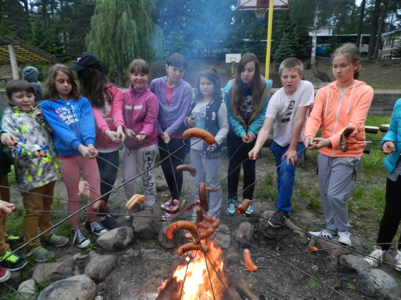 Czwartego dnia udaliśmy się do Ełku, gdzie przebywaliśmy w Muzeum Kolejki Wąskotorowej i Muzeum Pszczelarstwa. W tym drugim zobaczyliśmy ule architektoniczne ,przedstawiające budowle oraz rzeźbiarskie, przypominające różne postaci. Po powrocie do ,, Leśnego Dworu” odbyły się rozgrywki sportowe, w których brały udział Szkoła Podstawowa nr 1 i 4 z Turku. Chłopcy mogli pokazać swoje umiejętności piłkarskie, a dziewczynki rzucały piłką do kosza oraz rywalizowały w biegu przez przeszkody. Później odbyło się ognisko. Piekliśmy na nim kiełbaski i chleb.