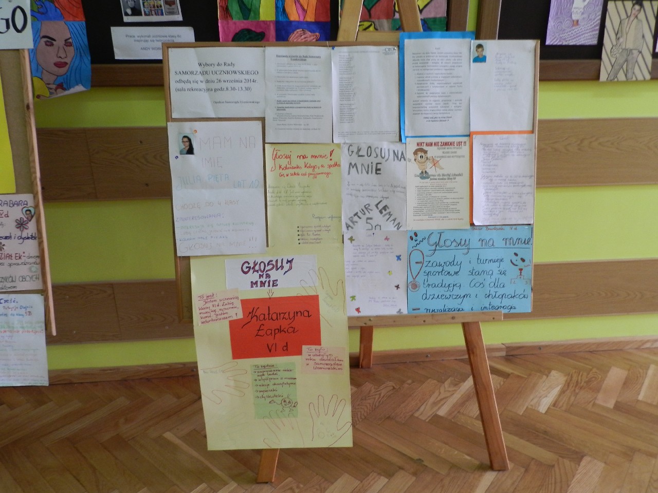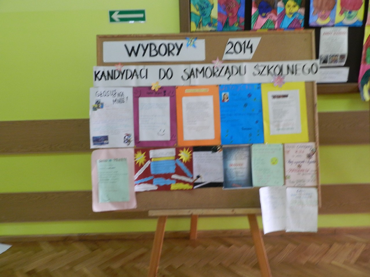 26 września już po raz drugi w naszej szkole w ramach współpracy z Centrum EdukacjiObywatelskiej odbyły się wybory do Samorządu Uczniowskiego na rok szkolny 2014/2015. Zanotowaliśmy 90% frekwencję wyborczą. Najwięcej głosów uzyskały następujące osoby: Natalia Borowczyk, Maciej Adamiak, Martyna Forma, Kasia Łapka, Klaudia Michalak, Aniela Kurzawa, Julia Szlucha, Oskar Brzostkowski, Klaudia Kowalewska, Nina Grabara, Anna Ziętek, Gabriela Grenda. Głosowało236 uczniów na 260 uprawnionych do głosowania. Kampanię wyborcza, którą prowadzili nasi kandydaci przebiegała na zasadach fair play. Nasze korytarze i gazetki były kolorowe od pięknych plakatów wyborczych. Kandydaci rozmawiali z swoimi wyborcami, przedstawiali swój program, zachęcali do głosowania. Bardzo dobrze spisała się komisja wyborcza, która przygotowały lokal wyborczy, karty do głosowania, urnę wyborczą oraz listy wyborców; czuwała nad przebiegiem głosowania. Wszystkim uczestnikom wyborów dziękujemy, a członkom Rady SU gorąco gratulujemy!