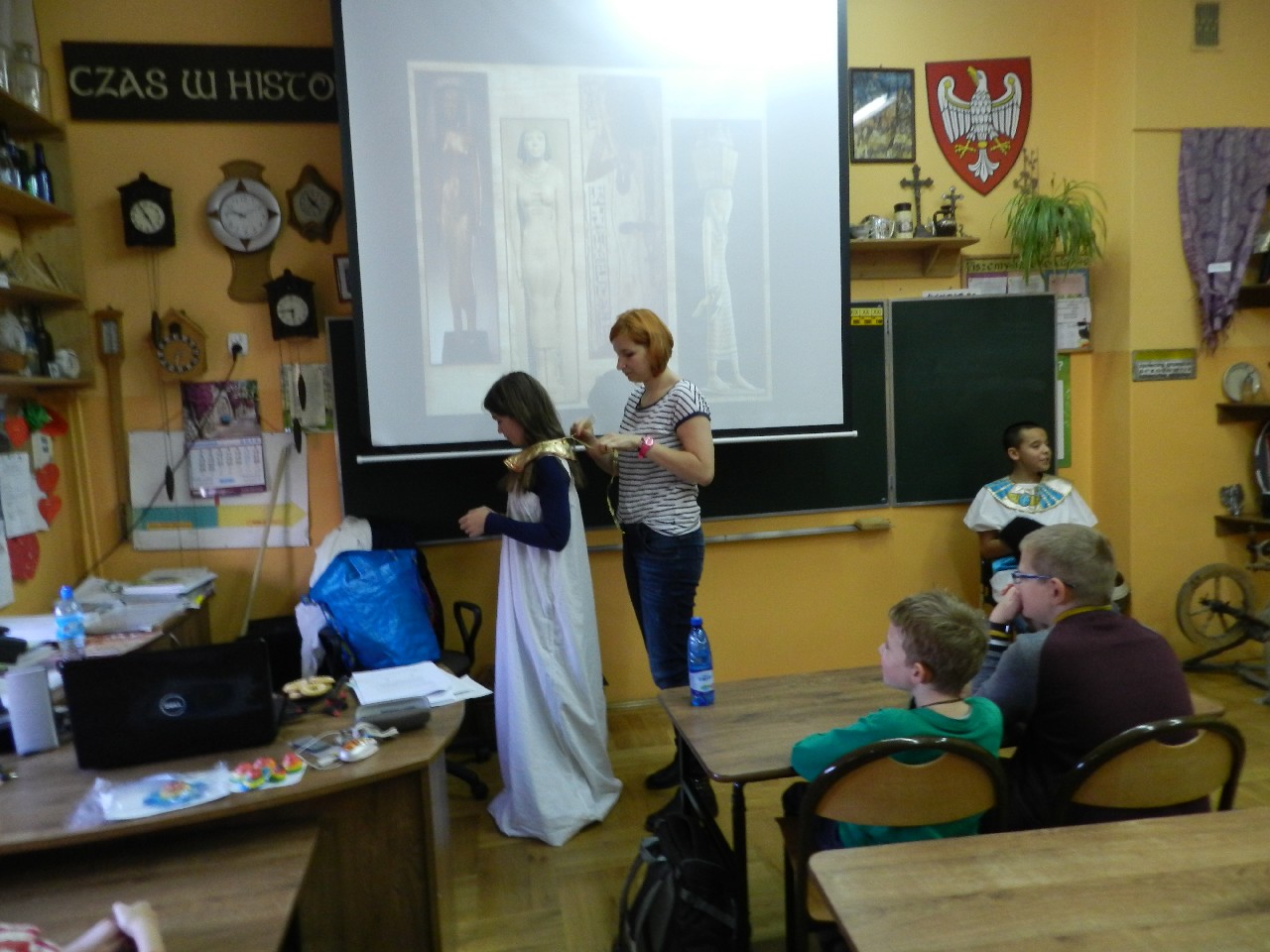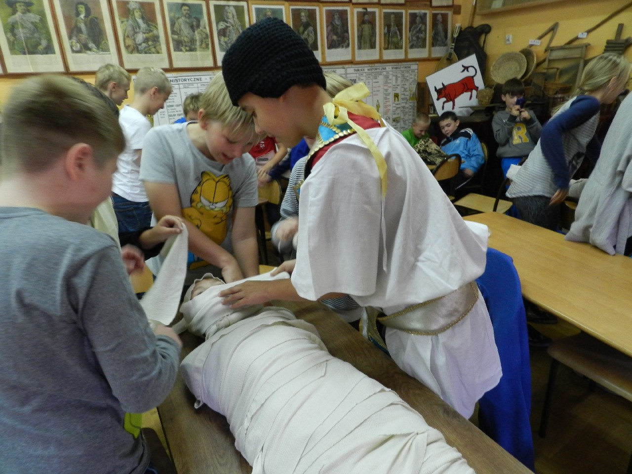 Wszyscy chętni uczniowie klas piątych 25 września przekraczając próg klasy historycznej mogli odbyć podróż do Starożytnego Egiptu. Lekcja muzealna, której tematem jest Śmierć i życie w Starożytnym Egipcie wpisała się w proces dydaktyczny. Tego typu lekcja rozwija i rozbudza zainteresowania uczniów, jest to wielki potencjał poszerzania wiedzy. Forma lekcji warsztatowa sprawia, że uczniowie aktywnie uczestniczą, wcielają się w ważne postacie