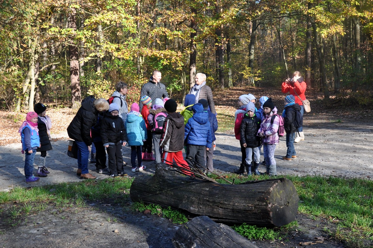 W jesienny, słoneczny dzień - 28 października - uczniowie klasy I „e”z wychowawczynią Panią Elżbietą Frasunkiewicz oraz rodzicami, wybrali się na pieszą wycieczkę do pobliskiego lasu. W Izbie Edukacyjnej Nadleśnictwa Turek spotkali się z Panem Leśniczym – Radosławem Szocińskim, który w ciekawy sposób przedstawił