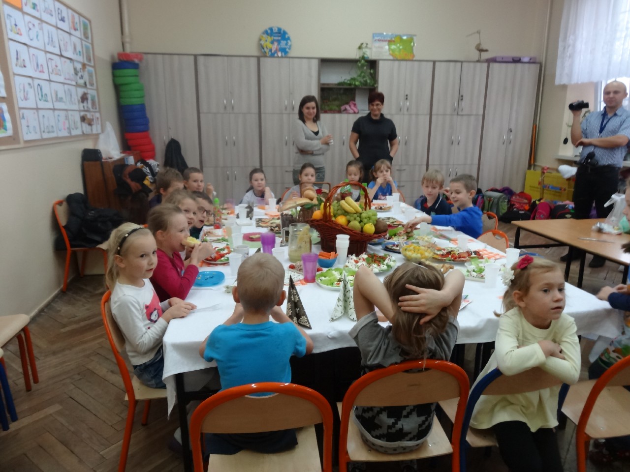 07.11.2014r. w piątek, odbyło się klasowe śniadanie. Do akcji po raz kolejny przystąpiła cała szkoła. Śniadanie to najważniejszy posiłek dnia. Dostarcza nam energii niezbędnej do funkcjonowania. Powinniśmy je jeść zawsze przed wyjściem do szkoły. Z tych powodów wszyscy zorganizowaliśmy wspólny posiłek. Na 3 i 4 godzinie lekcyjnej (9:45 - 11:25) uczniowie klasy 5e przygotowali kanapki.
