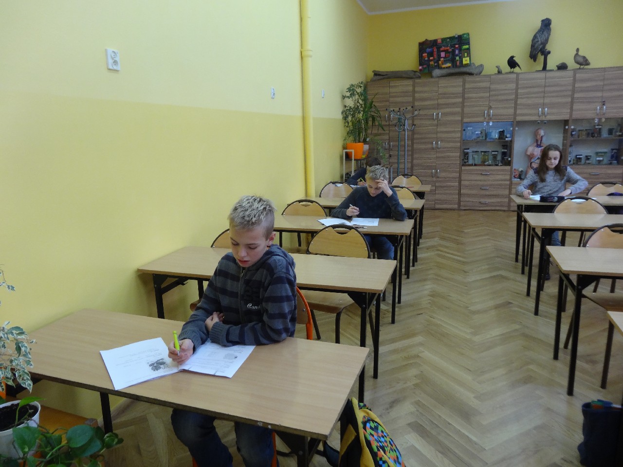 Tym oto najważniejszym wytycznym z zakresu wiedzy i umiejętności mieli sprostać uczestnicyszkolnego etapu Wojewódzkiego Konkursu Przyrodniczego. Zmierzyły się z nim następujący uczniowie szóstych klas Julia Szlucha i Natalia Borowczyk z klasy 6a, Maciek Adamiak, Piotr Wojtkowiak, Jakub Wojciechowski, Bartosz Witkowski, Justyna Wojciechowska i Weronika Poszwa z klasy 6 d. Uczestnicy otrzymali pamiątkowe długopisy. Serdecznie gratulujemy uczestnikom i życzymy powodzenia w zmaganiach konkursowych.