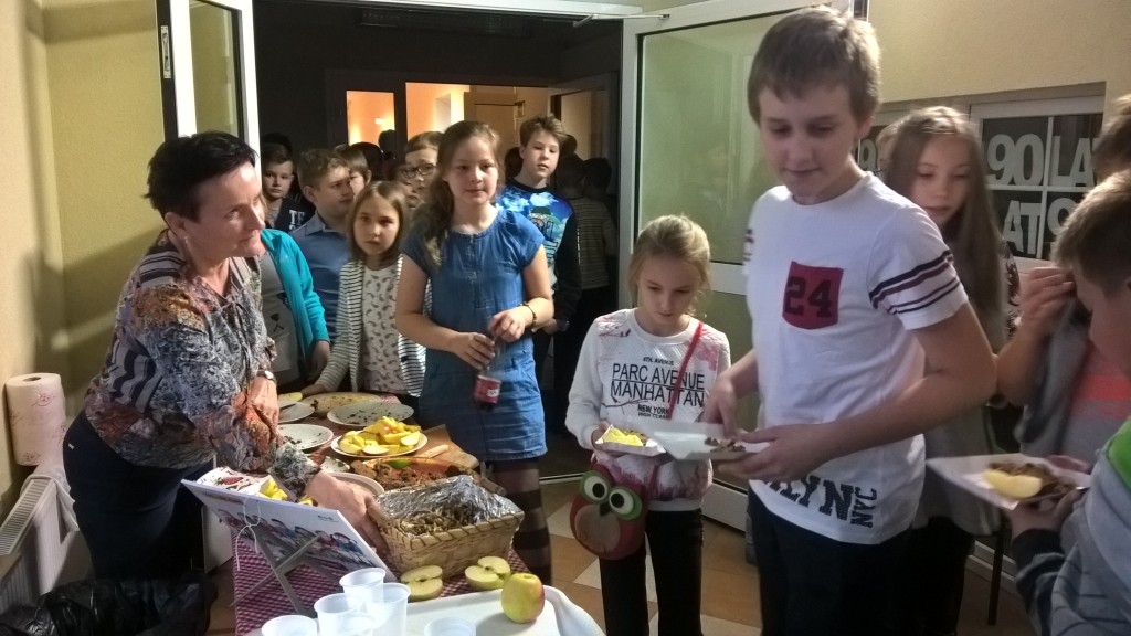 Podczas przerwy wszyscy uczestnicy z apetytem zajadali jabłka, smaczne orzechy i banany, przygotowane przez rodziców.