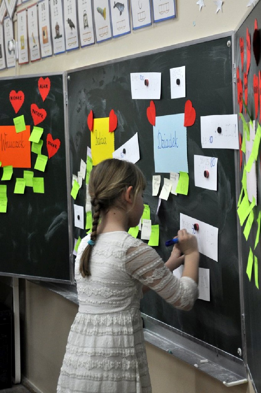 Udział Babć i Dziadków w zajęciach lekcyjnych, wspólna zabawa przy muzyce, drobne upominki i uśmiech na twarzach, potwierdził tylko, że dziadków i wnuczęta łączy niezwykła więź. Dziadkowie to wspaniali nauczyciele. Pokazują wnukom świat, czytają bajki, bawią się i często zabierają na ciekawe wyprawy. Potrafią też smutne chwile osłodzić dobrym słowem i … czekoladką.