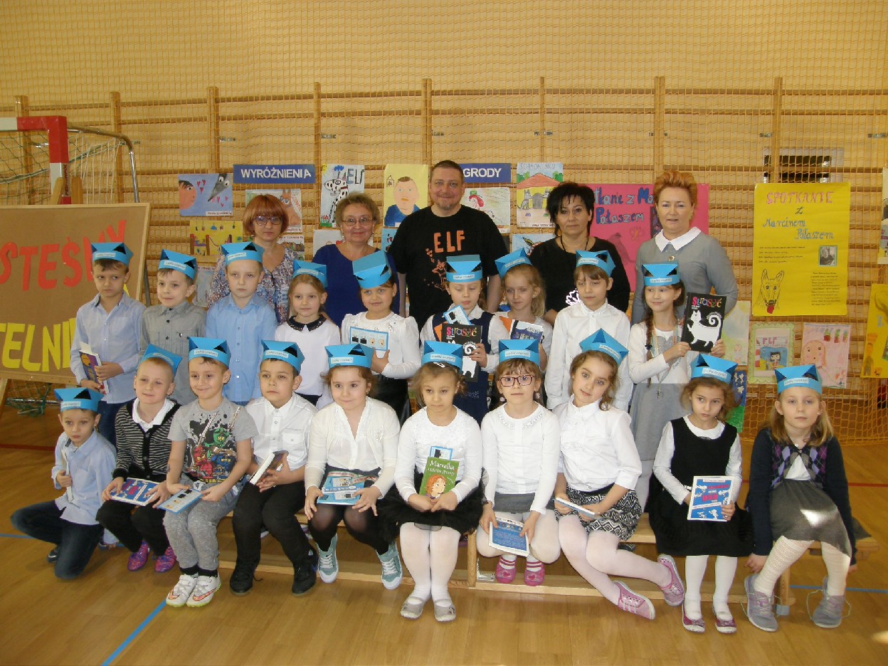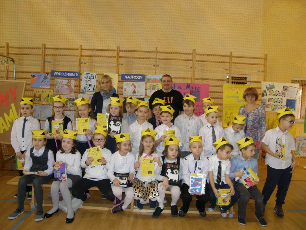 Uczniowie wszystkich klas przygotowywali się do Spotkania z p. Marcinem Pałaszem już od wielu tygodni: czytali Jego książki, słuchali fragmentów czytanych przez nauczycieli oraz brali udział w Konkursie Czytelniczo – Plastycznym pt. „Czy znamy Marcina Pałasza?”. Nagrody za najciekawsze prace otrzymali: Filip Perliński 1e, Marta Cieślak 1d, Maria Orłowska 1d, Stanisław Nawrot 1a, Michalina Mirkiewicz 1a, Michalina Stasiak 5d, Agata Szelewska 6a, Kewin Trzmielewski 6a, Anna Przekwas 3b, Zofia Ostrowska 2d, Nadia Sidorowicz 2d. Przyznano również wyróżnienia, które otrzymali: Nadia Stawska 1d, Alicja Grabowska 1e, Wiktoria Gadzinowska1d, Oliwia Molenda 1a, Patrycja Sosińska 4d, Aleksandra Pietrzak 5d, Agata Dzikowska 6a, Julia Urbańczyk 4d, Piotr Tomalak 6e, Kinga Seidel 2e, Weronika Koperska 2c, Gabriela Hatlińska 2c. Uczniów oceniała Komisja w składzie: przewodnicząca Aldona Piwońska, członkowie: Aleksandra Antczak i Elżbieta Nowak.