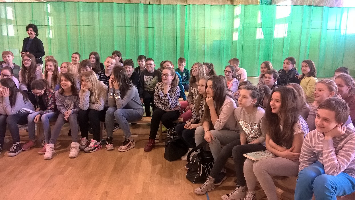 W spotkaniu autorskim z Pisarzem wzięli udział uczniowie klas II – VI. Wszyscy świetnie się bawili, słuchając opowieści naszego Gościa o tym, jak powstają Jego książki, sąd się biorą pomysły do pisania tekstów, które stają się później bestsellerami. Najważniejszym bohaterem opowieści Pana Marcina był Jego przyjaciel pies, o imieniu Elf. Uczniowie zasypali Pisarza pytaniami, na które Gość odpowiadał z właściwym sobie poczuciem humoru. Na koniec ustawiła się ogromna kolejka po autograf. Obliczyliśmy, że w sumie pisarz udzielił ich około 1000.