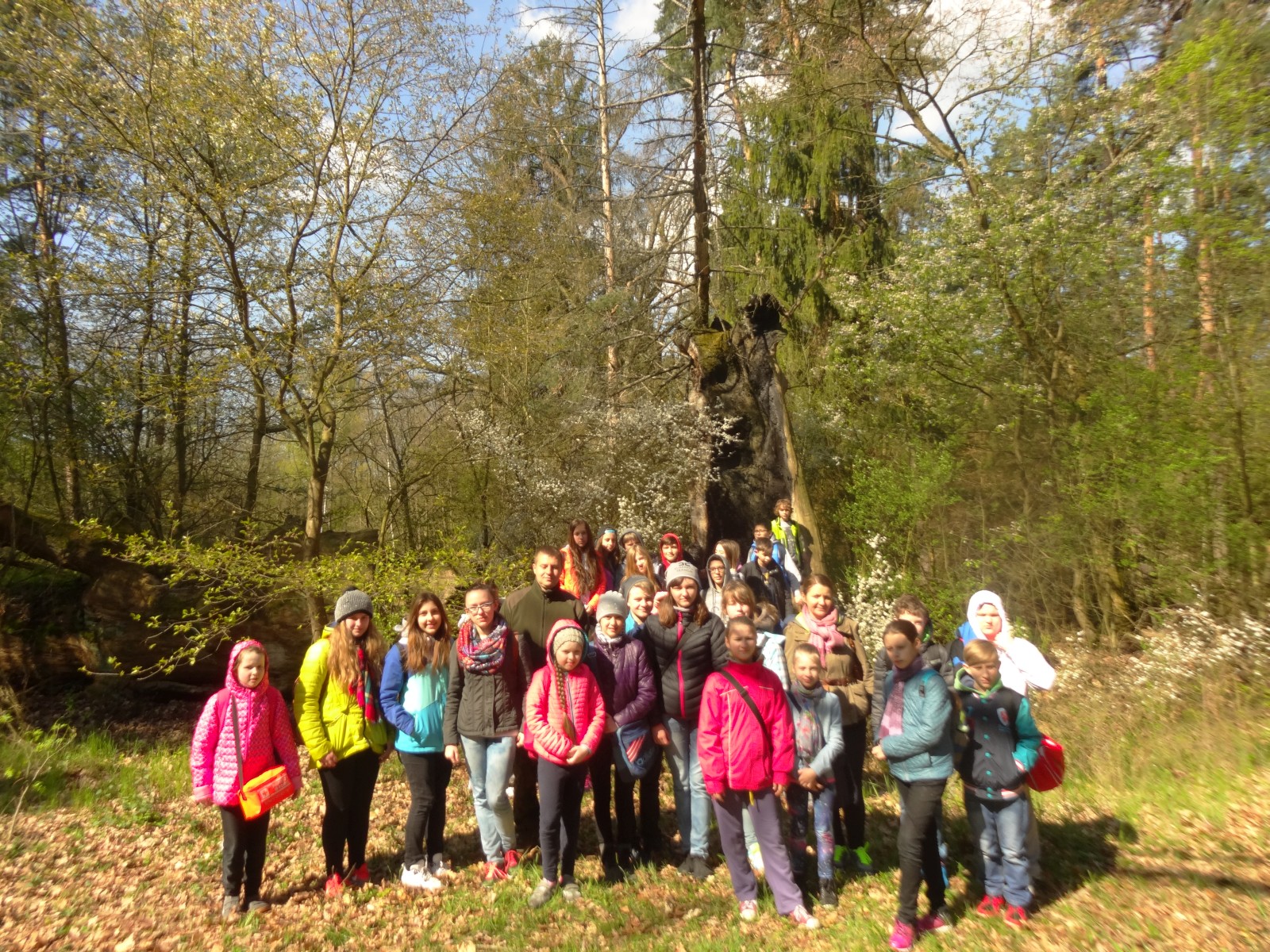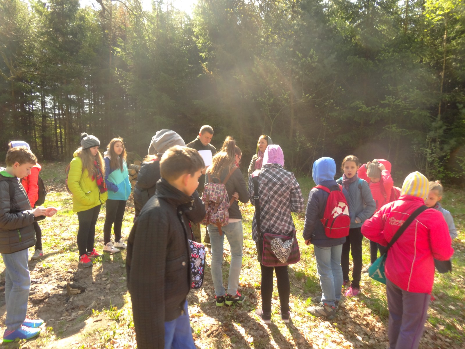 29 kwietnia 2016 roku klasy 4c, 6e i 6d pod opieką p. Bożeny Mielczarek i p. K. Błajet brały udział w lekcji przyrody w terenie. Lekcja przyrody odbyła się na ścieżce dydaktycznej „Moczary” w Leśnictwie w Grzymiszewie. Prowadził ją p. Radosław Szociński podleśniczy z Nadleśnictwa Turek. Uczniowie zobaczyli stawy będące ostoją płazów, ptaków i bobrów. Oglądali ogromne i sędziwe dęby szypułkowe, które są pomnikami przyrody, piękne łąki położone w dolinie rzeki Topiec oraz ul dla dzikich pszczół. W czasie drogi, którą przebyli pan podleśniczy opowiadał o drzewach i roślinności, które napotkaliśmy (paprocie, skrzypy, przylaszczkę, zawilec gajowy, fiołek leśny, ziarnopłon wiosenny). Dzięki lekcji w terenie uczniowie mogli wzbogacić wiedzę przyrodniczą, rozwinąć zainteresowania a przede wszystkim kształtować szacunek do przyrody.
