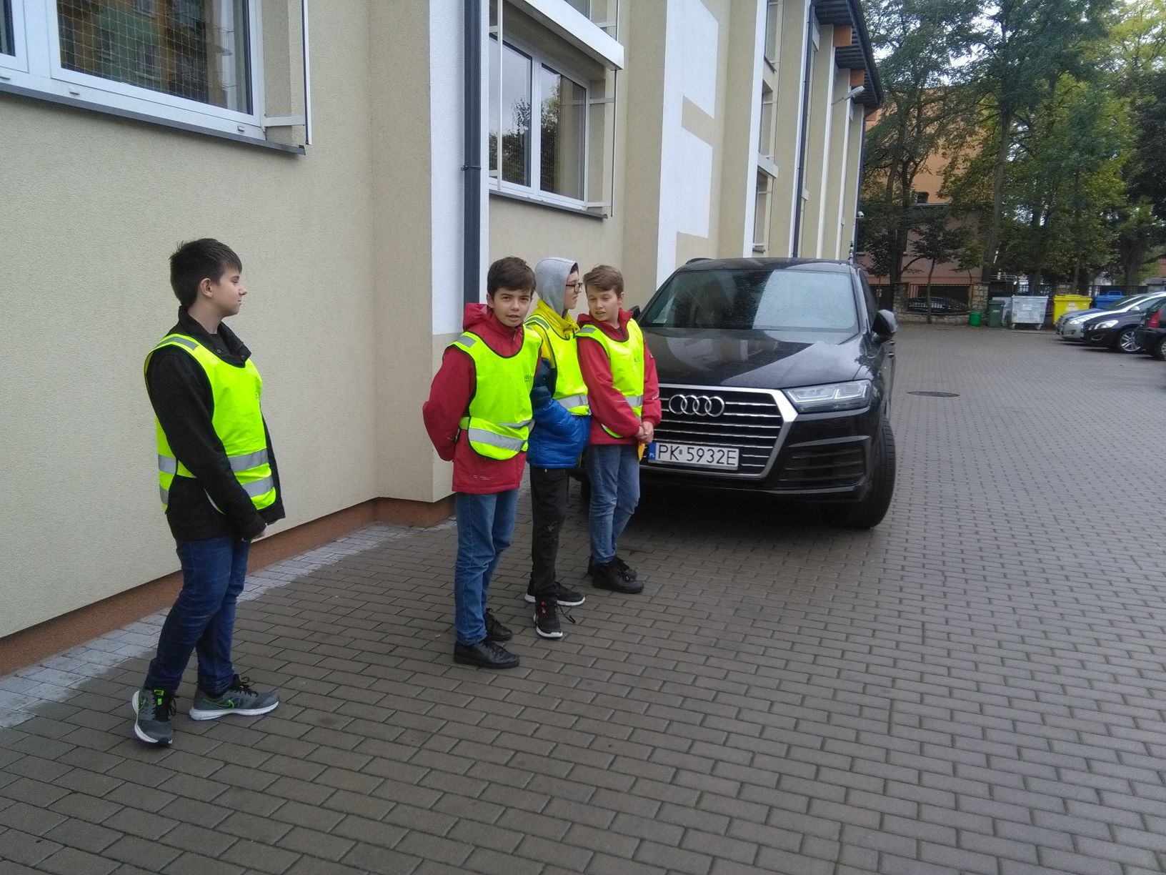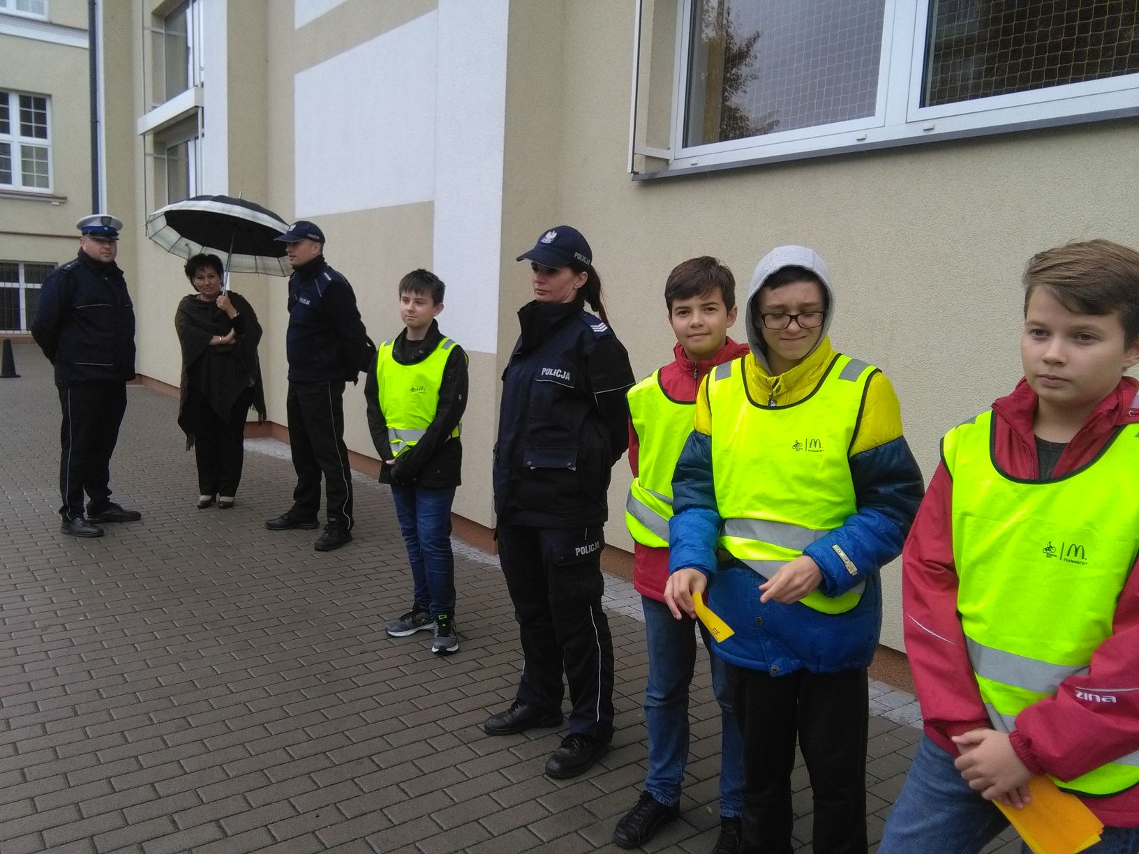 Samorządu Uczniowskiego SP 1 przeprowadzali kontrolę drogową kierowców. Wręczali „żółtą kartkę” kierowcom, którzy nie zastosowali się do znaków drogowych. Żółta kartka zamiast mandatu, podobnie jak na piłkarskim boisku na razie ma być upomnieniem za łamanie przepisów drogowych. Policjantom podczas kontroli drogowej towarzyszyli: Marcin Buda, Michała Wszędybył, Kacper i Oskar Brzostowscy.