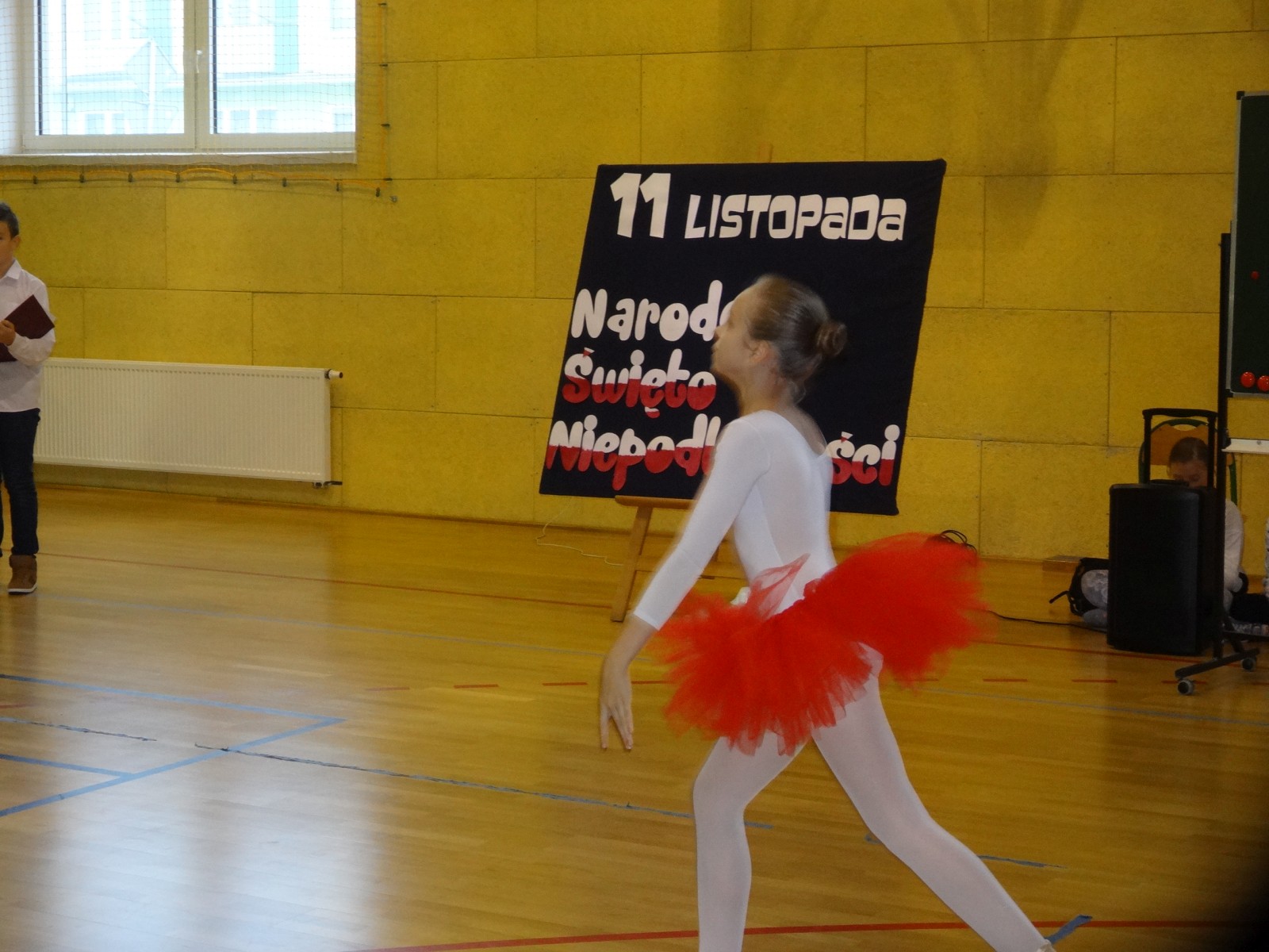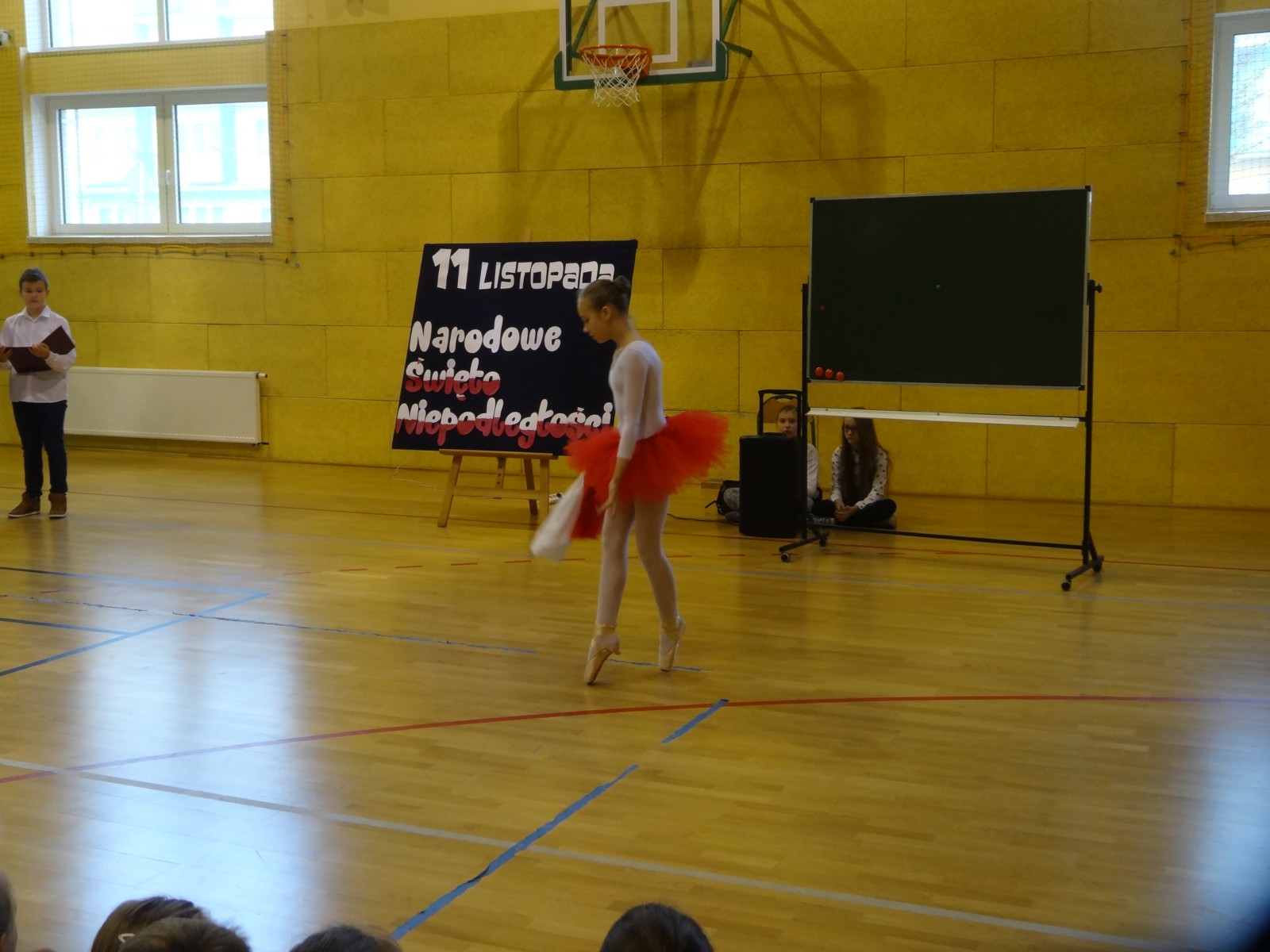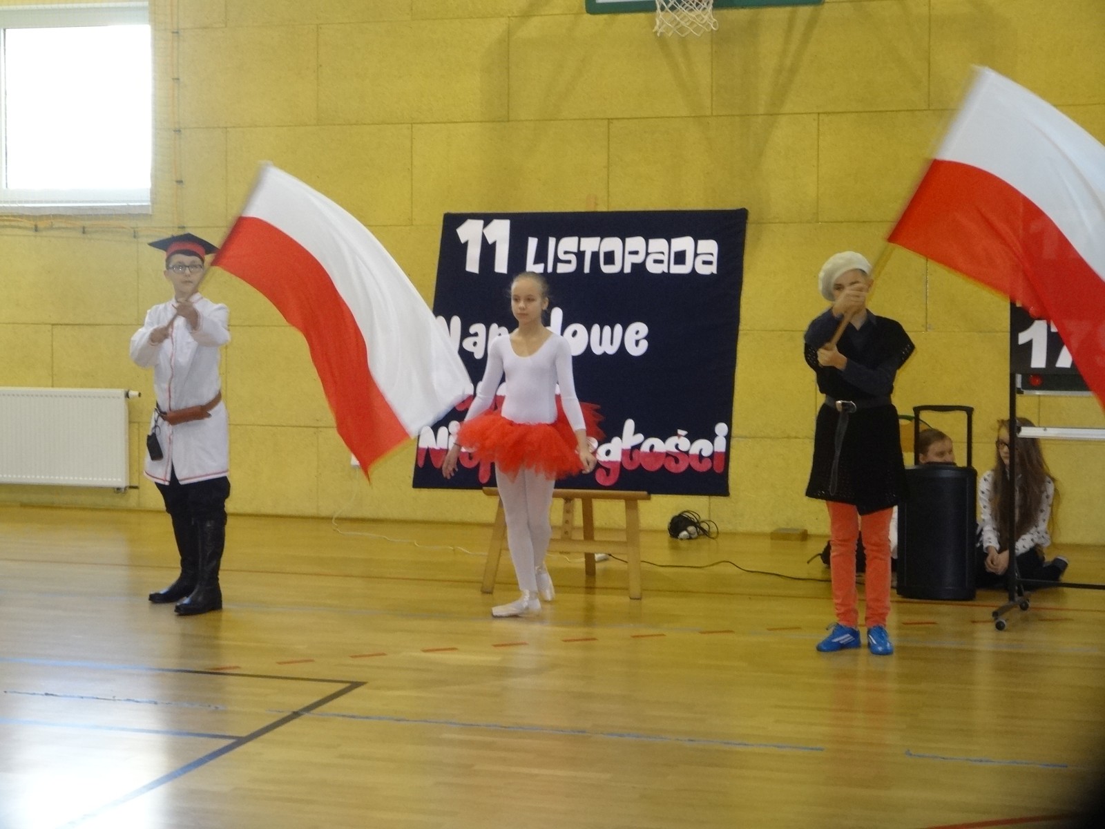 Na scenie można było zobaczyć upersonifikowaną Polskę. W tę rolę wcieliła się jedna z uczennic naszej szkoły Oliwia Bartosik. Głównym punktem przedstawienia był taniec klasyczny(balet) w wykonaniu tej uczennicy. Uczniowie odgrywali także rolę kosynierów i zaborców. W całym przedstawieniu nie zabrakło wierszy i popularnych pieśni patriotycznych.Apel miał uświadomić uczniom, jak ważnym i upragnionym przez naszych przodków wydarzeniem było odzyskanie przez Polskę niepodległości. Dzień 11 listopada stał się dla nas symbolem miłości do ojczyzny, walki o wolność, symbolem wiary i zwycięstwa.Apel przygotowali uczniowie klas VIc i kółka historycznego pod okiem nauczycielek p. Małgorzaty Pakuły i p. Bożeny Mielczarek.
