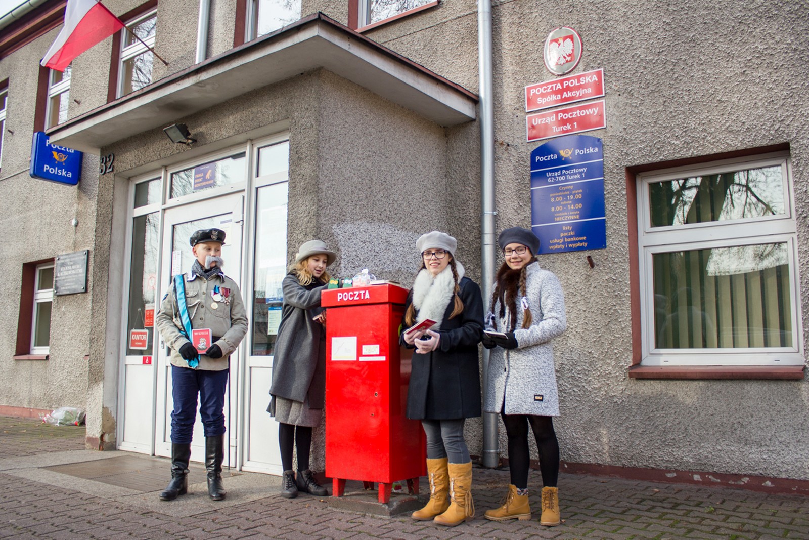 postaci historyczne marszałka Polski Józefa Piłsudskiego i jego rodzinę. Rolę Józefa Piłsudskiego zagrał Adam Białas, Aleksandry Piłsudskiej – Zuzia Skiba, córki Wandy – Michalina Rosiak, córki Jadwigi – Nina Grabara. Korzystają z uprzejmości p. Marcina Klinkiewicza – właściciela stadniny wybrali się bryczką na przejażdżkę po naszym mieście. Marszałek i jego rodzina pozdrawiali mieszkańców Turku z okazji 98 rocznicy odzyskania niepodległości przez Polskę. Rozdawali okolicznościowe pocztówki z podobizną Marszałka, życząc radosnego przeżywania święta. Uczniowie odwiedzili włodarza naszego miasta.