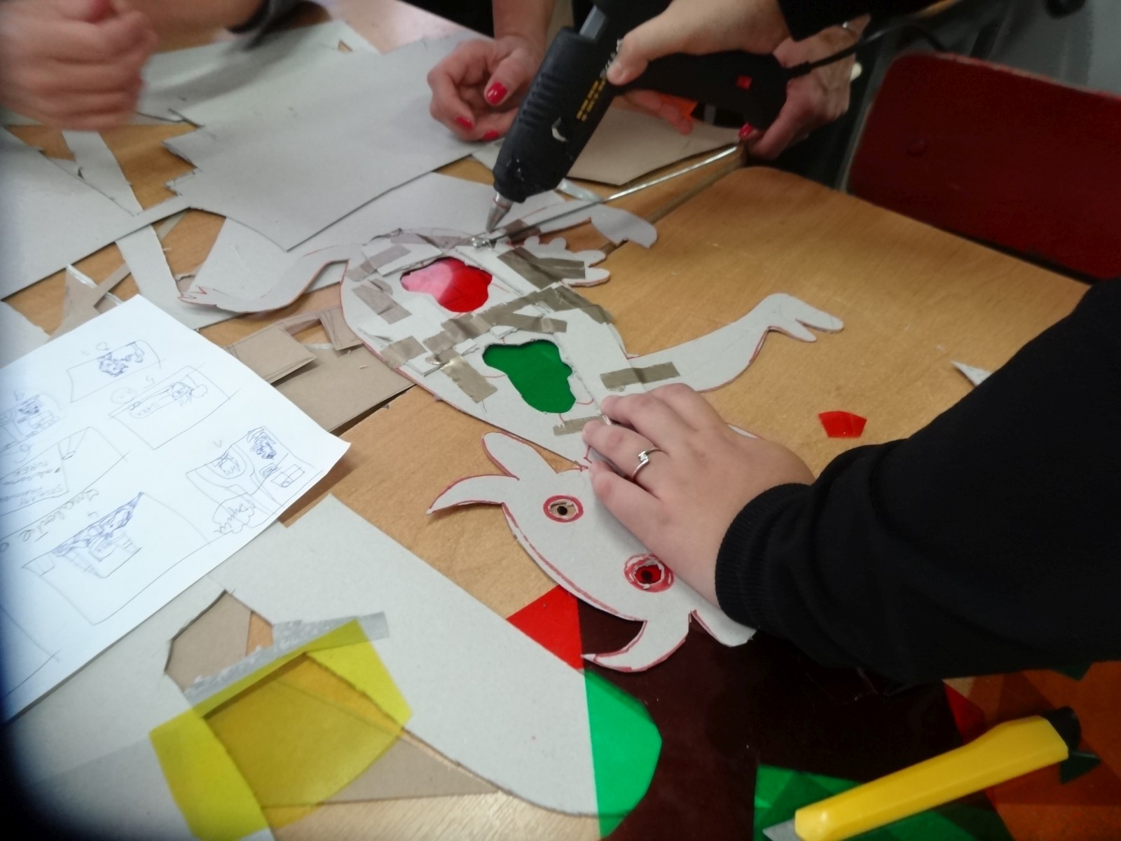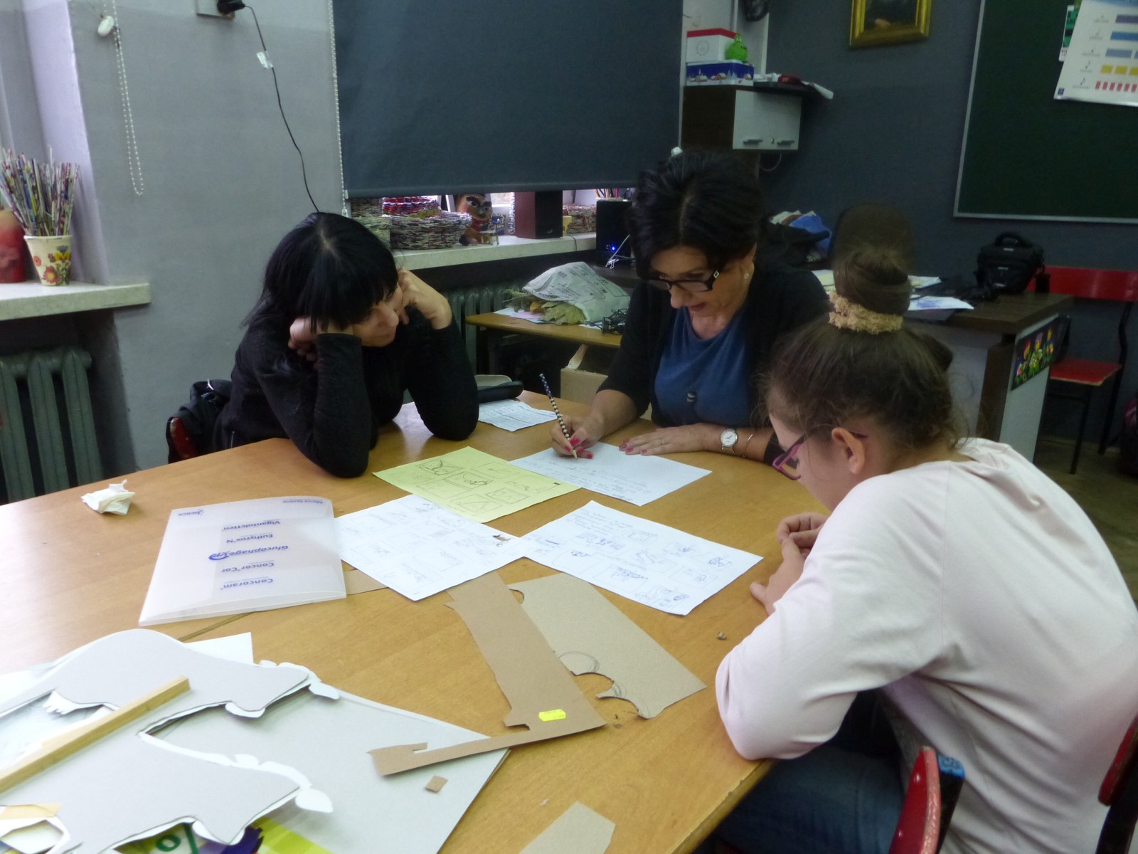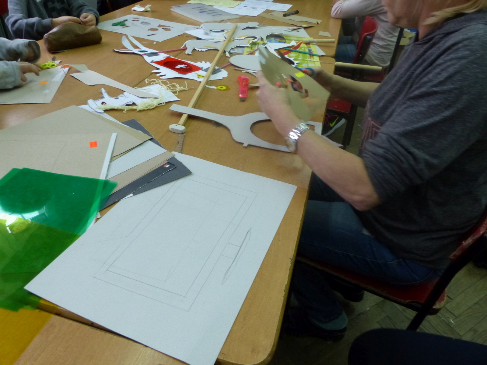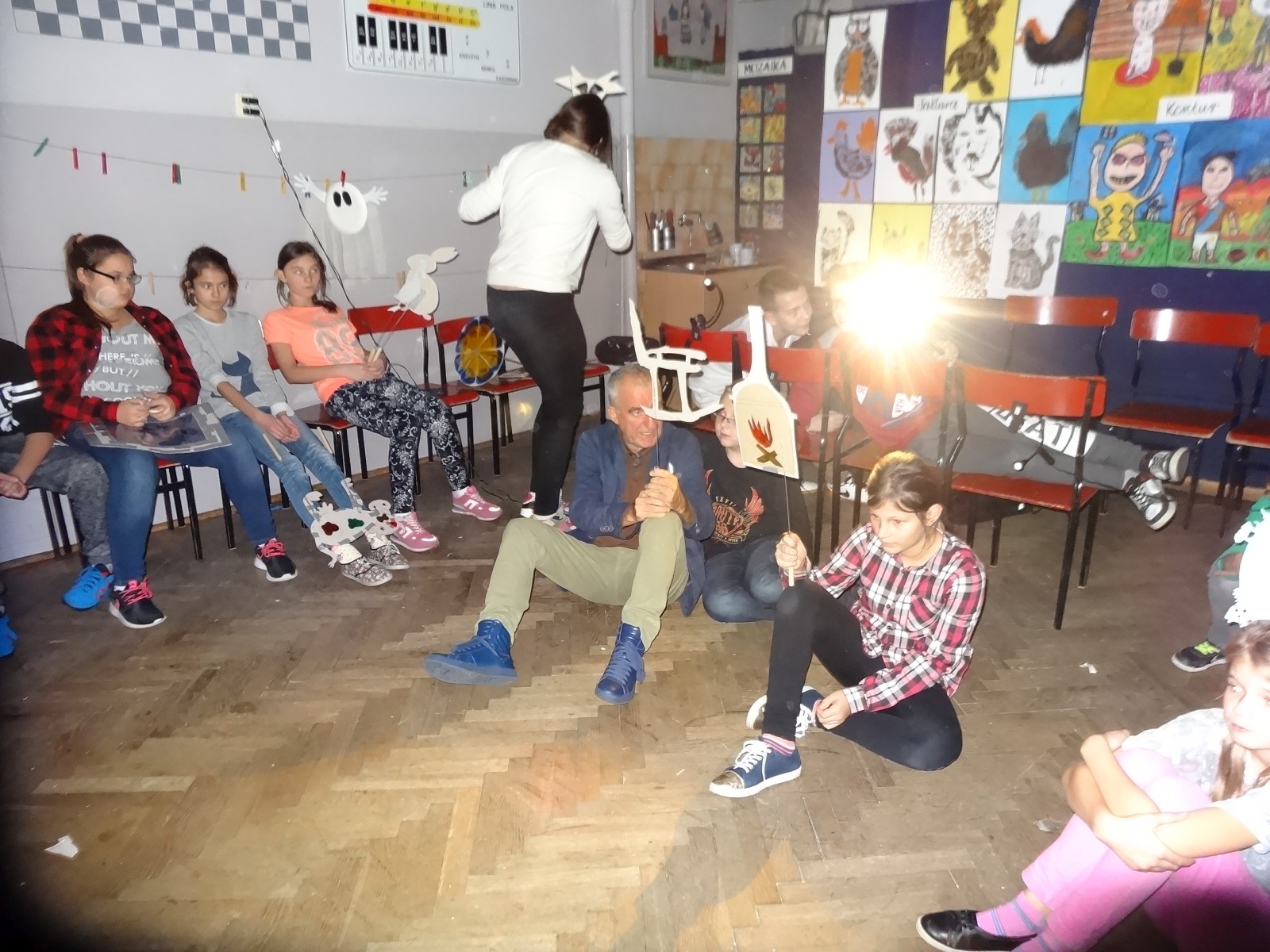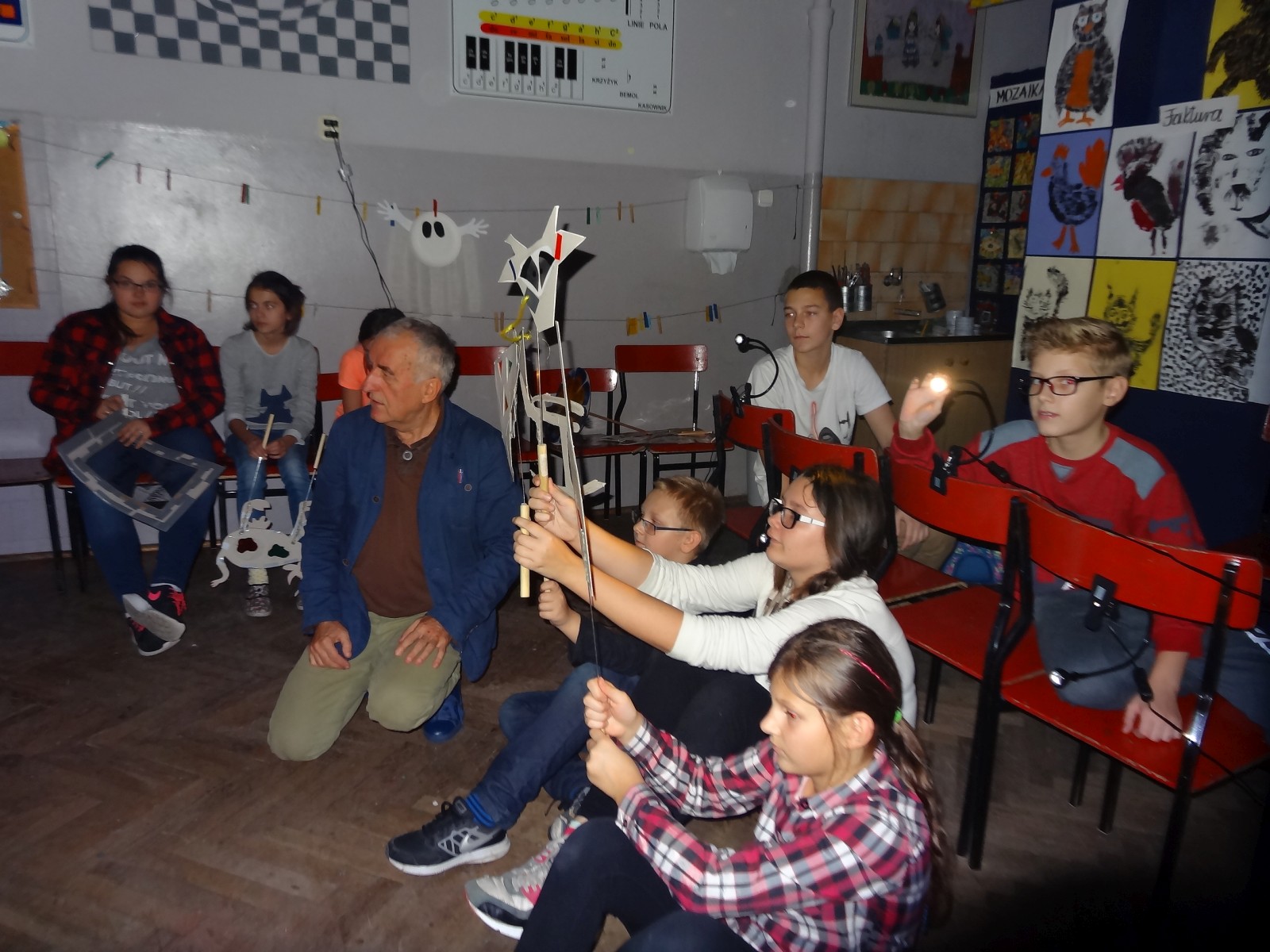 Dzieciom bardzo podoba się forma teatru cieni, warto było więc spróbować. Do tego grupa po raz pierwszy miała pojawić się na scenie i nie miała jeszcze śmiałości, dlatego łatwiej im było za pomocą obrazu wyrazić to, co czują, niż za pomocą słowa. Łatwiej im było schować się za maską, lalką czy ekranem. Warto podkreślić, że wszystkie rekwizyty dzieci wykonały samodzielnie. Teatr cieni dał duże możliwości, dzieci poznały wiele technik, ale przede wszystkim dobrze się bawiły. Odbyły się nocne zmagania ze sztuką. Pomysł nocowania w szkole był dla uczniów ekscytującą propozycją. Trudnej sztuki teatru cieni dzieci uczyły się także pod okiem instruktorów Poznańskiej Fundacji Artystycznej.