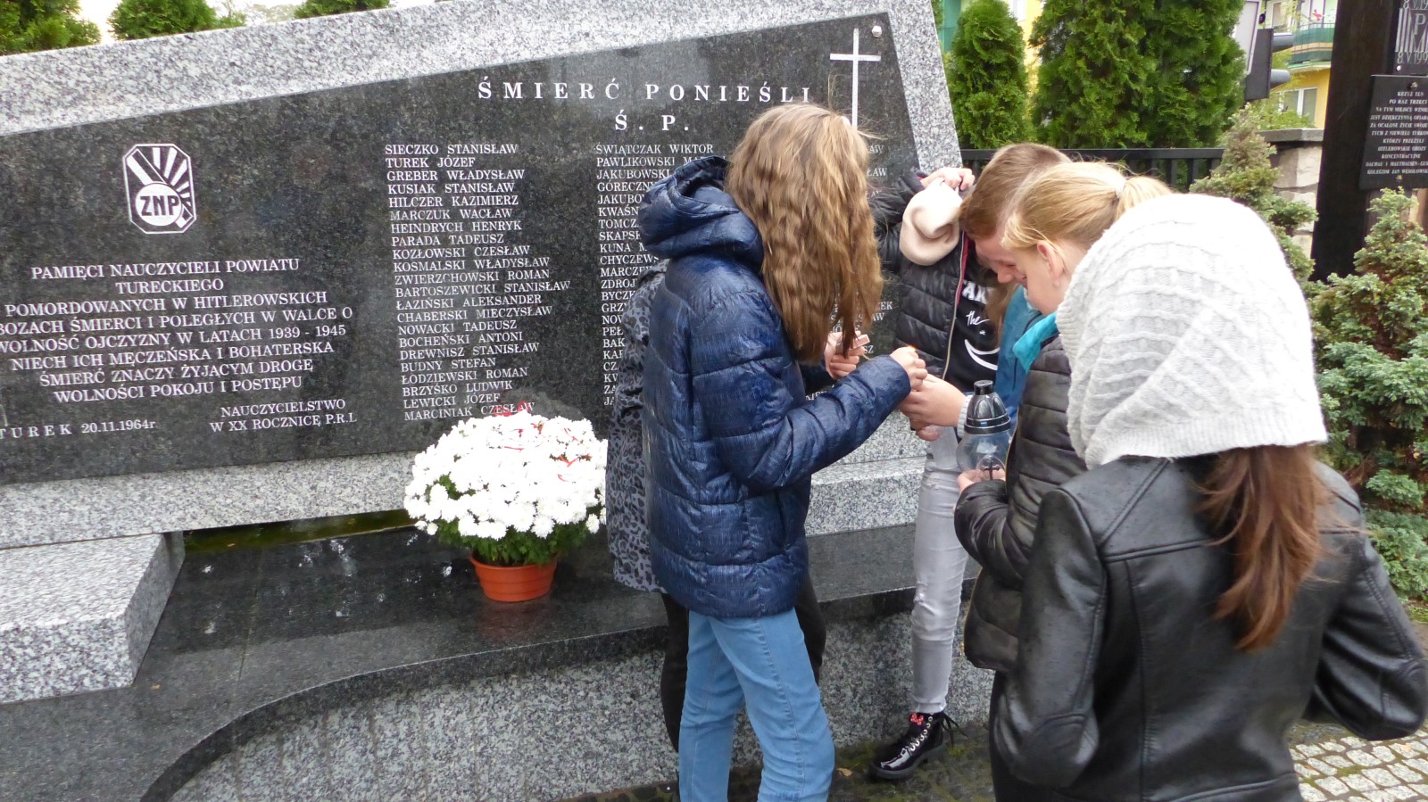 Po raz kolejny nasza szkoła przystąpiła do akcji „Zapal znicz pamięci”. Akcja ma na celu uczczenie pamięci regionalnych bohaterów, których mordowano za to, że byli Polakami, patriotami, ludźmi aktywnymi społecznie – elitą narodu polskiego. Jest ona organizowana od ośmiu lat przez Rozgłośnie Regionalne Polskiego Radia oraz piony edukacyjne IPN w Poznaniu, Bydgoszczy, Łodzi, Katowicach i Gdańsku oraz portal dzieje.pl i Muzeum Historii Polski. Uczniowie naszej szkoły zapali znicze na pomniku zamordowanych nauczycieli z powiatu tureckiego, który mieści się przy ulicy 3 Maja.