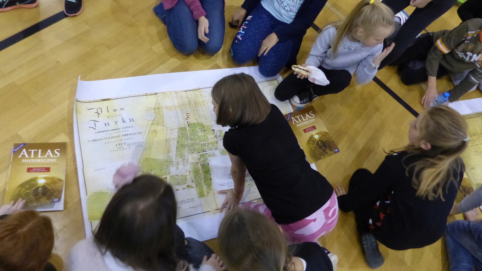 Pan Bartek przyniósł dużo map historycznych naszego miasta - Turku. Mapy pochodziły z różnych okresów historycznych. Wszyscy mieliśmy okazję pooglądać je z bliska i odszukać ulice, na których obecnie mieszkamy. Okazało się jednak, że nie wszystkie ulice dało się odszukać. Pan Bartek wytłumaczył nam, że wiele ulic zmieniło swoją nazwę( na przykład ulica Przebiegła to obecnie Szeroka, Nowy Świat to ulica Kaliska Pólko to ulica Żeromskiego) lub nie istniało jeszcze wtedy w Turku. Mieliśmy również możliwość zapoznać się z legendami dawnych planów a następnie odnaleźć obiekty terenowe na planach. Mogliśmy też zaobserwować w którym kierunku rozrosło się nasze miasto. Poznaliśmy różnice pomiędzy mapami geograficznymi a mapami historycznymi.