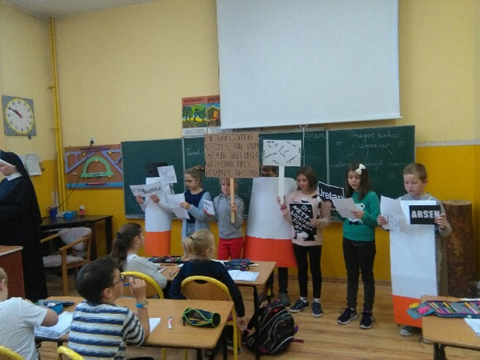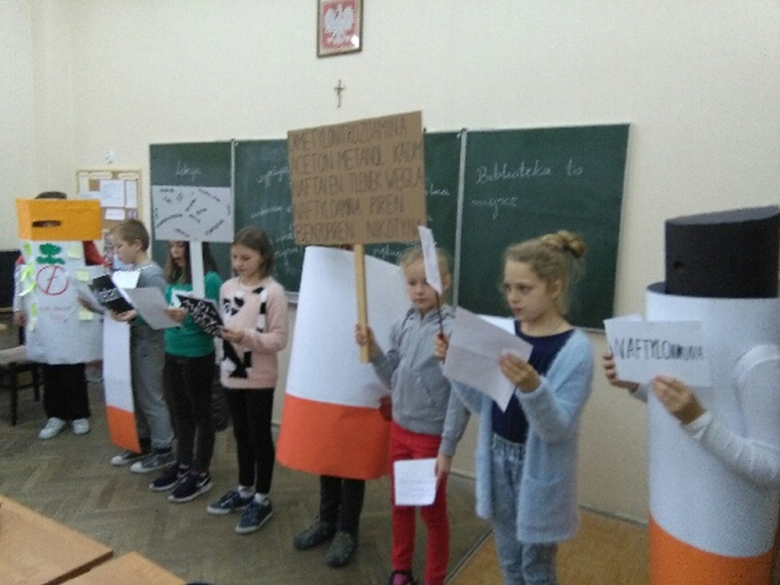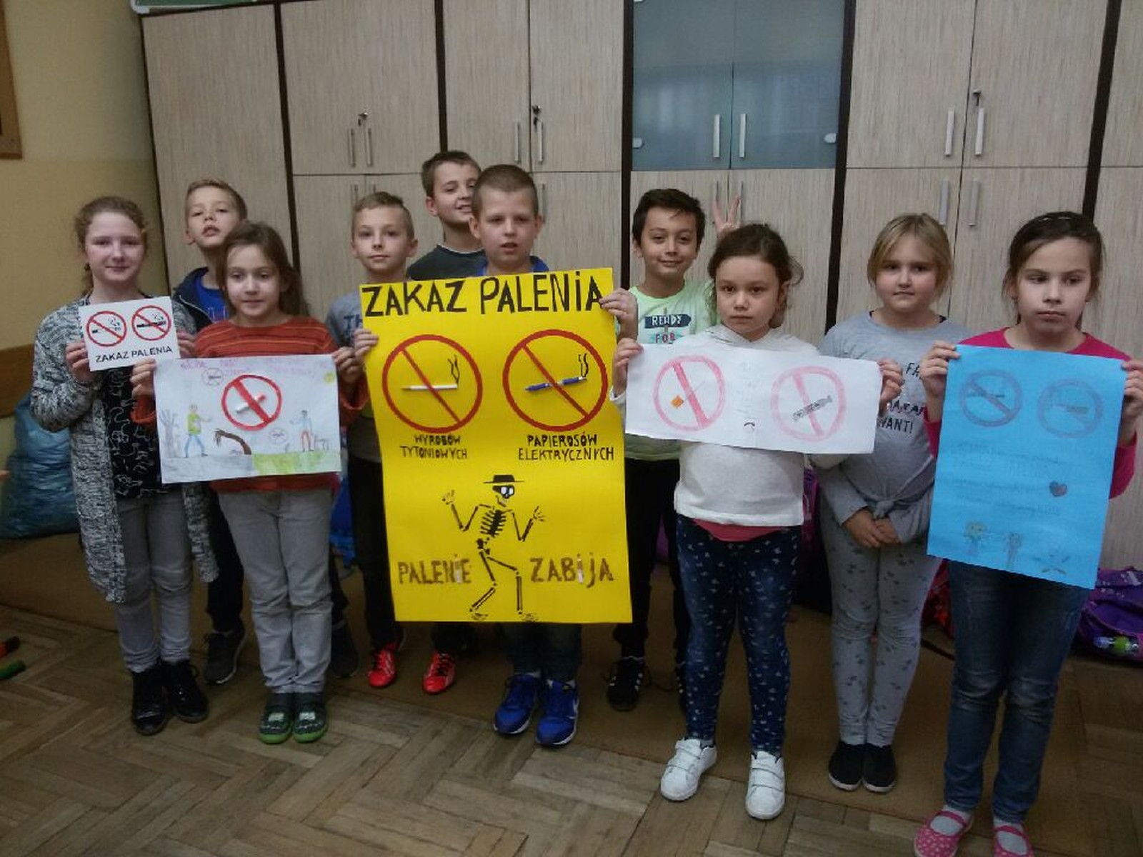 16 listopada 2017r. obchodziliśmy Światowy Dzień Rzucania Palenia. Tego dnia klasy 1-3 opracowywały nowe zakazy palenia tytoniu, a klasy 4-6 przebierały się za papierosa, obklejając go nawami substancji trujących. Każda klasa wraz z wychowawcą omówiła skutki palenia tytoniu i zapoznała się z statystykami osób palących w Polsce. Zadowalające jest to, iż procent ludzi palących papierosy jest z roku na rok coraz mniejszy. Klasa 4d i 5c zaprezentowały swoje stroje oraz uświadamiały uczniów i pracowników całej szkoły. Na wywiadówce rodzice zostali zapoznani z metodami rzucania palenia.