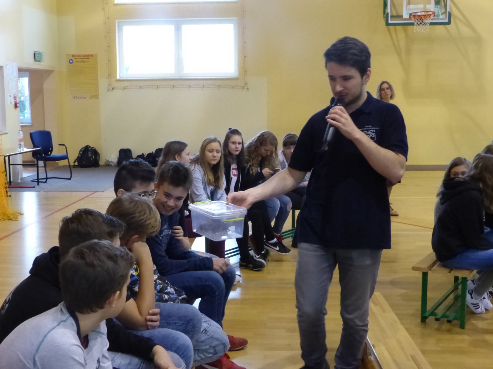 16 listopada 2017 roku w naszej szkole odbyła się żywa lekcja przyrody. Tematyką było życie płazów. Te całkiem nieduże zwierzęta mają wiele cech przystosowawczych. Mogliśmy na żywo zobaczyć płazy ze świata: ropuchę Agę, rzekotkę zieloną australijską, kumak dalekowschodni, traszki ogniste z Japonii i salamandrę tygrysią. W sposób spontaniczny i przyjemny poszerzyliśmy swoją wiedzę oraz przezwyciężyliśmy lęk przed nieznanym. Dowiedzieliśmy się, że najwięcej płazów jest w Indiach. W Polsce występuje 18 gatunków i wszystkie są pod ochroną. Wiele wrażeń i pozytywnych emocji było widać na naszych twarzach. Oby jak najwięcej takich lekcji jak dziś.