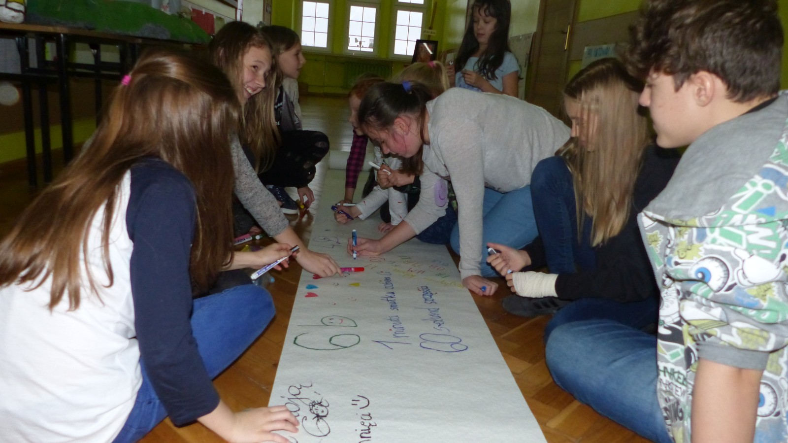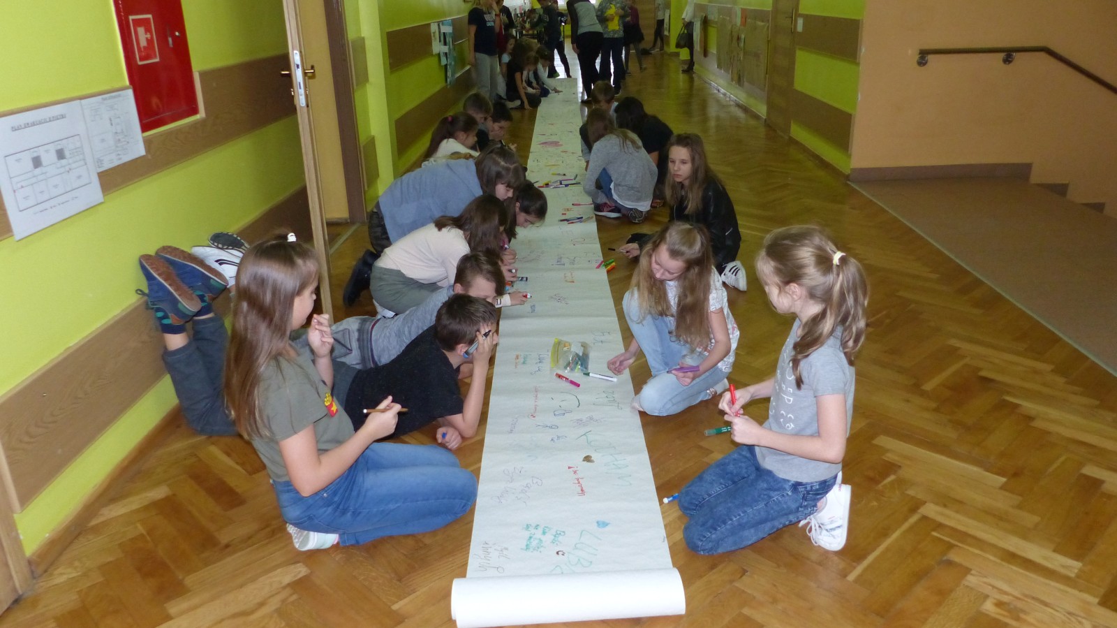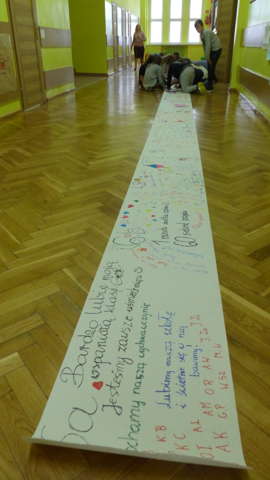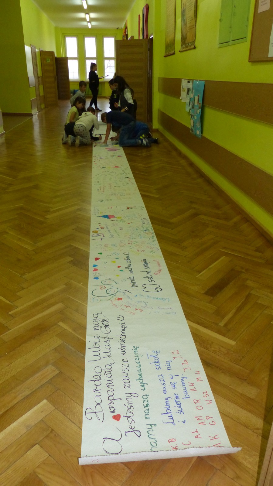 21 listopada 2017r. obchodziliśmy Światowy Dzień Życzliwości i Uśmiechu. W tym dniu razem tworzyliśmy „Mega Życzenia”. Uczniowie klas 4-6 i nauczyciele wpisywali życzenia, życzliwe słowa i hasła dla kolegów, koleżanek oraz bliskich osób. Inicjatorem „Mega Życzeń” był Samorząd Uczniowski.