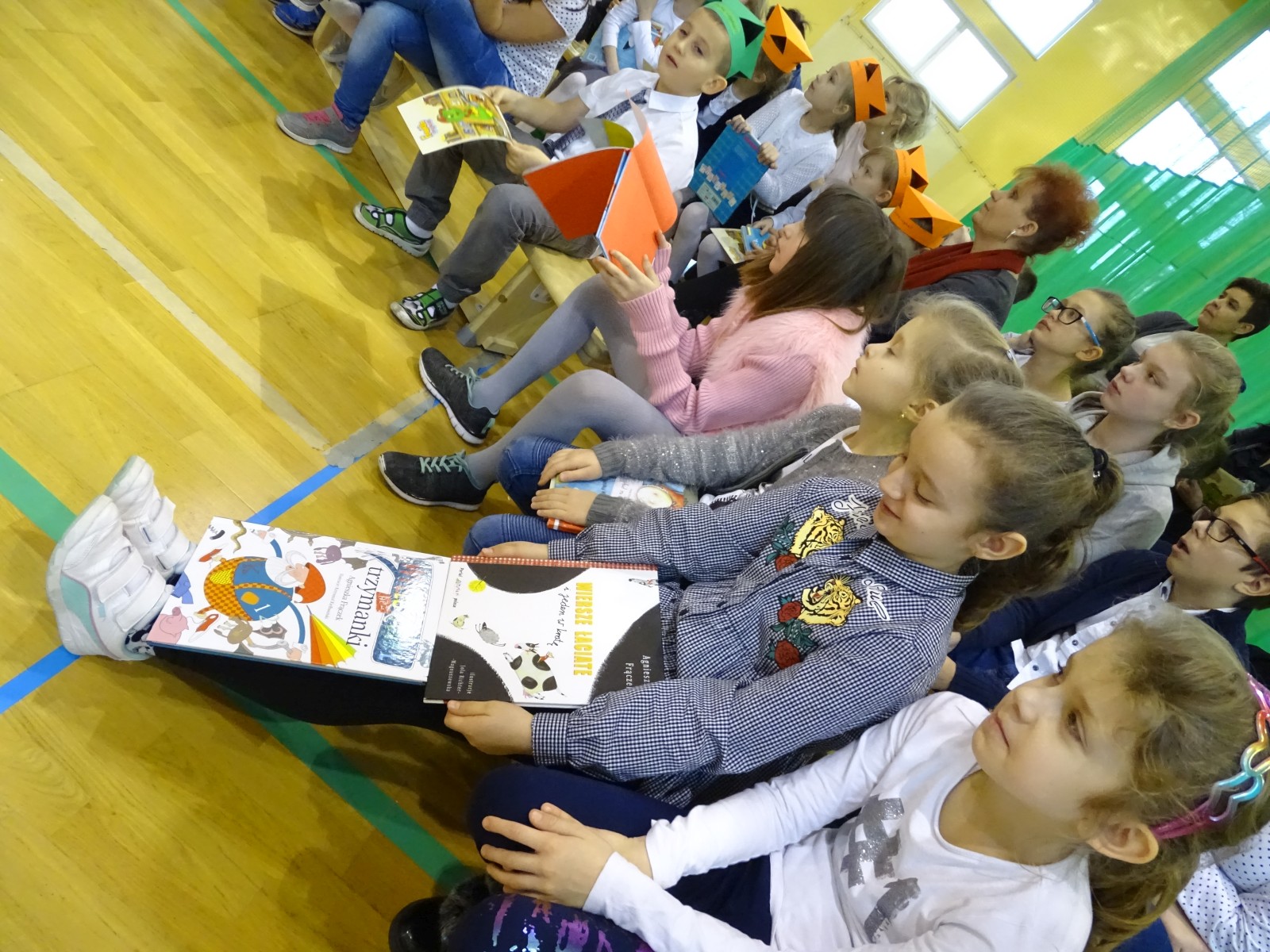 Pierwszaki złożyły uroczyste przyrzeczenie, a następnie zostały pasowane na czytelników przez pisarkę. W spotkaniu, poza pierwszoklasistami, uczestniczyli także uczniowie klas: 2a, 2b i 3e. Szczególnym przeżyciem dla Brunona Grabary z kl. 1d oraz Zuzi Podgórskiej z kl. 2a, było wystąpienie przed publicznością z recytacją wierszy pisarki. Wszyscy oni z niecierpliwością oczekiwali na moment, kiedy będą mogli podejść do p. Agnieszki, by otrzymać od niej osobistą dedykację.