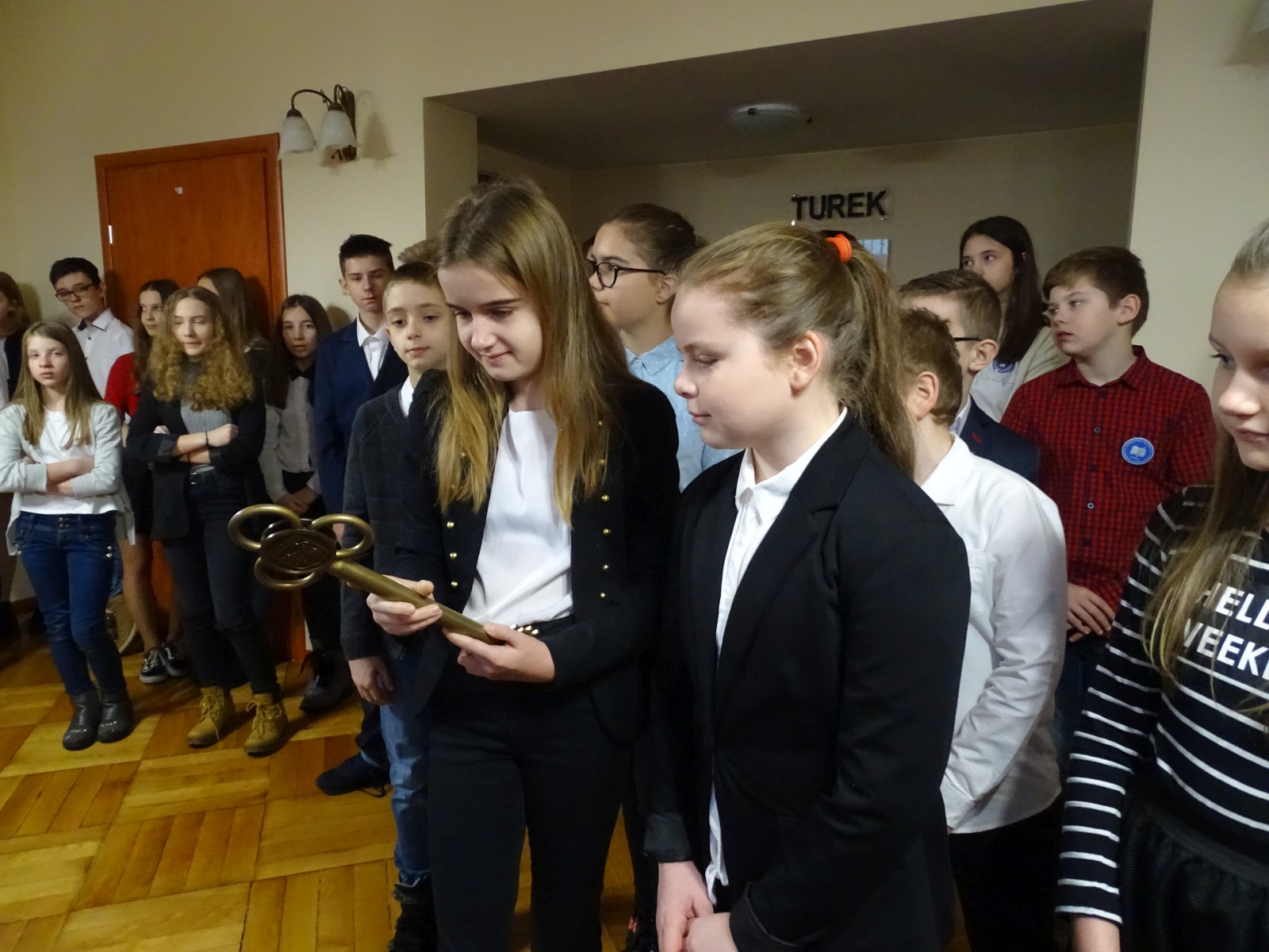 Nagrodą dla uczniów za uzyskanie tego zaszczytnego tytułu była wycieczka do Urzędu Miasta i spotkanie z burmistrzem Turku p. Romualdem Antosikiem, która odbyła się 20 grudnia 2017 r. Uczniów powitali: sekretarz miasta p. Andrzej Drzewiecki oraz radny p. Maciej Aniołczyk. Pan Drzewiecki opowiedział młodym mieszkańcom Turku w jaki sposób działa Urząd Miasta i jakimi problemami zajmują się jego pracownicy.