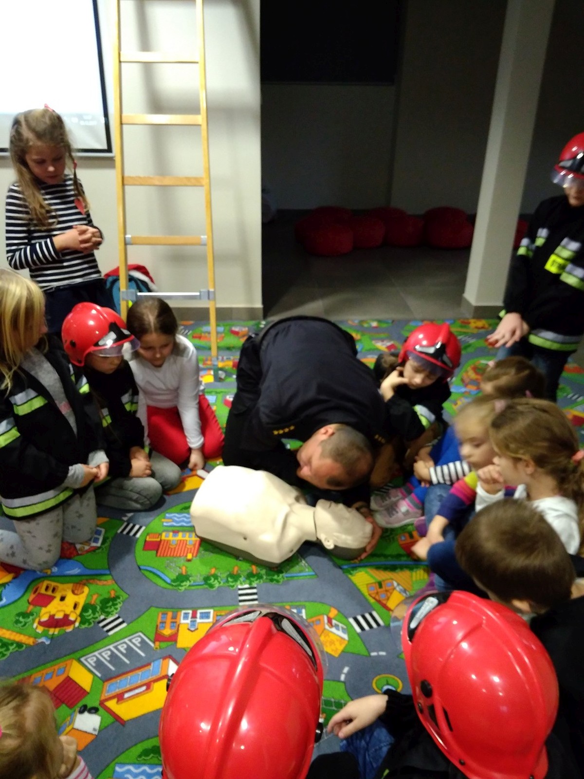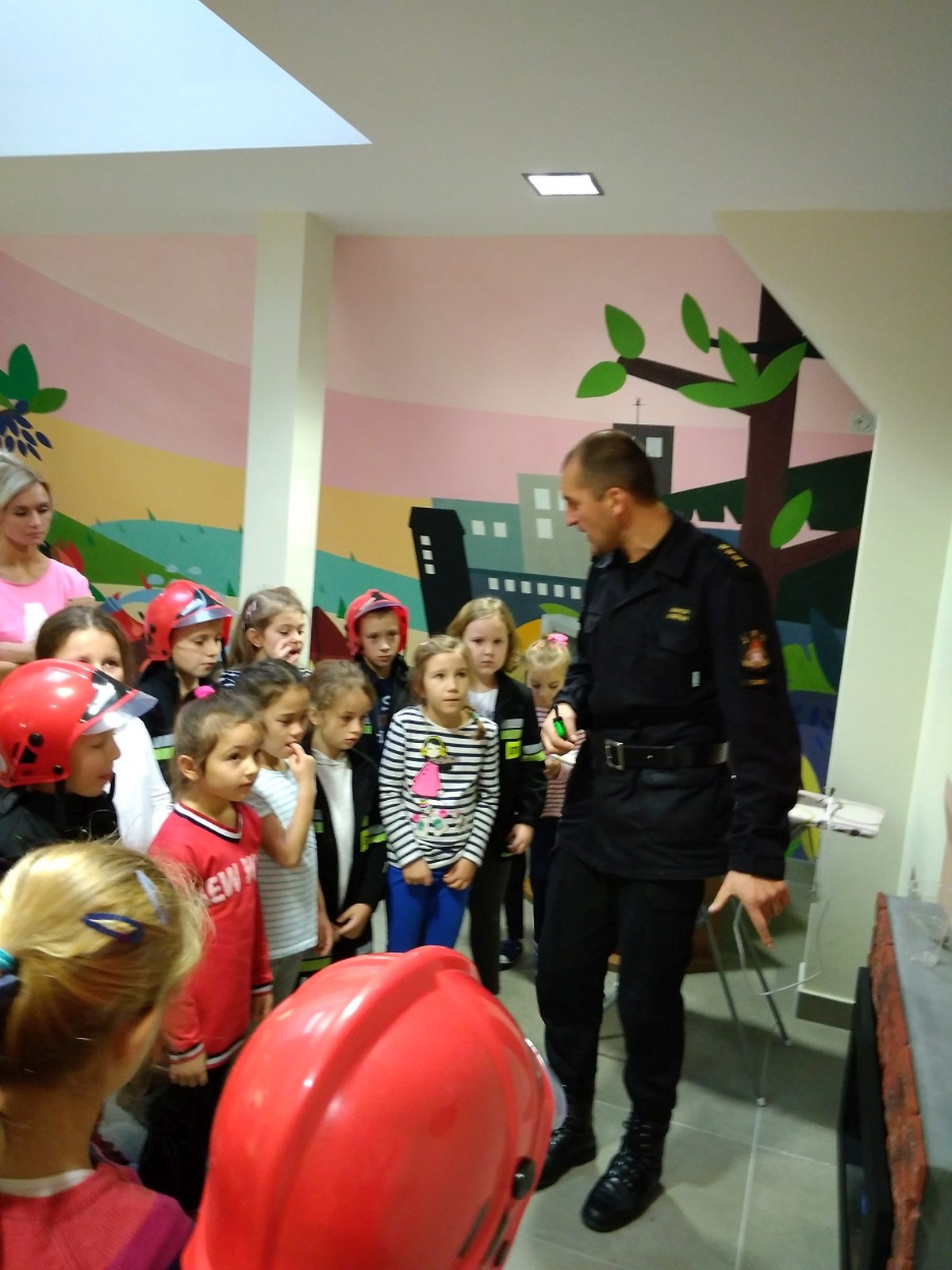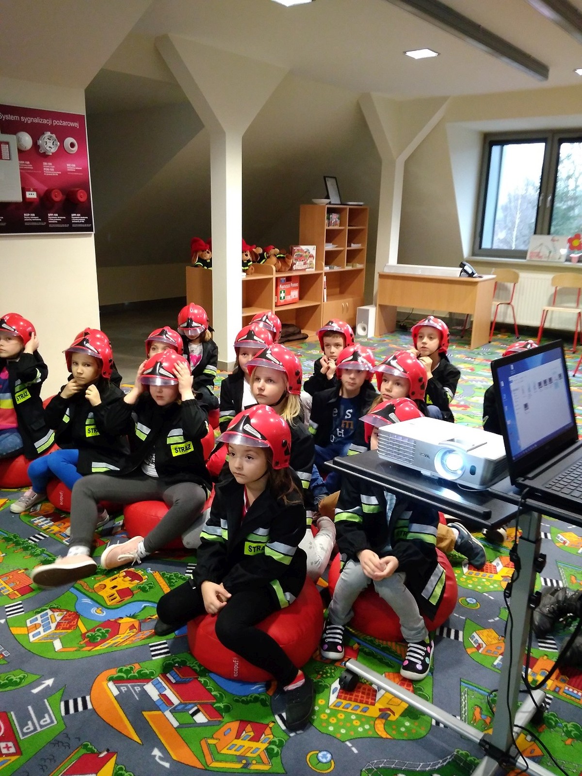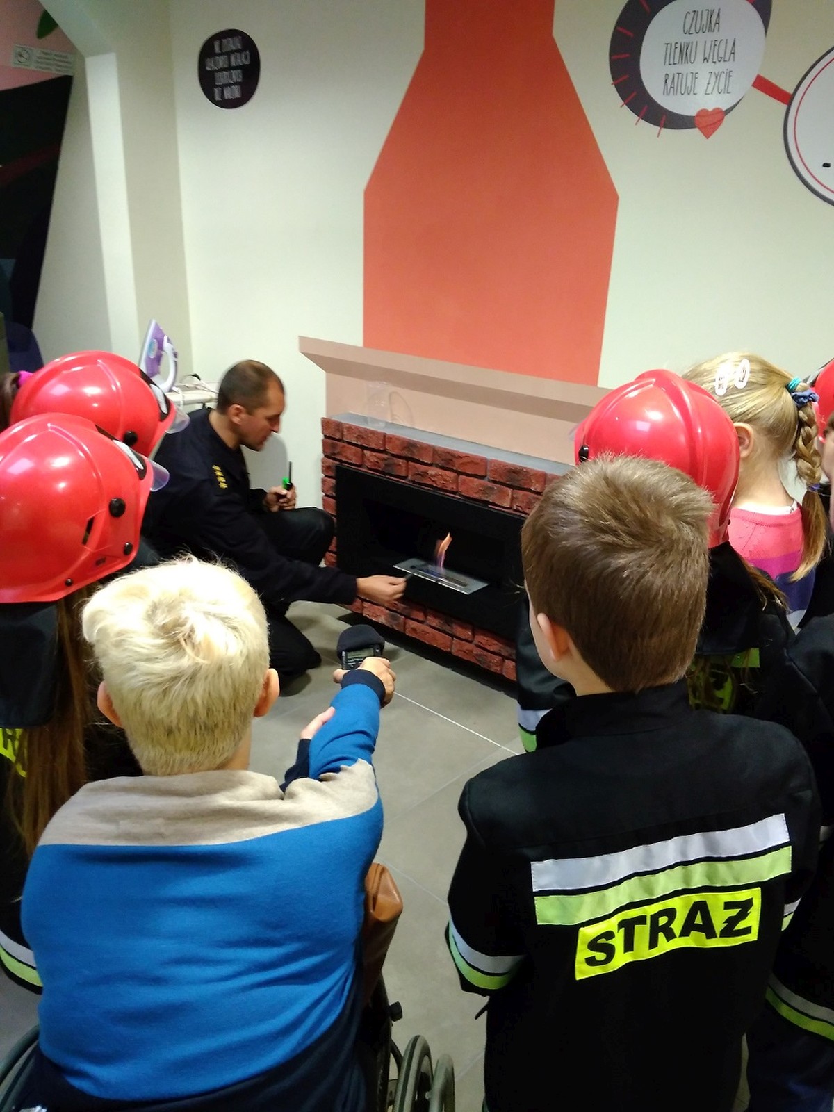 Ważnym punktem programu były zajęcia edukacyjne w salce OGNIK, która jest pierwszą taką salą w Wielkopolsce. Zajęcia przeprowadził pan Marcin Dzieran, który ma bardzo dobry kontakt z dziećmi. Na zajęcia złożyły się filmiki, rozmowy, pogadanki, działania praktyczne w formie zabawy. W sali dzieci zakładają mundury i hełmy strażackie w dziecięcych rozmiarach, co było dla nich bardzo atrakcyjne. W salce są też pufy do siedzenia, makieta domu jednorodzinnego, zabawowy wóz strażacki, zaimprowizowana kuchnia oraz pokój z kominkiem, żelazkiem i telewizorem. Zajęcia kończą się wręczeniem dyplomu każdemu dziecku.