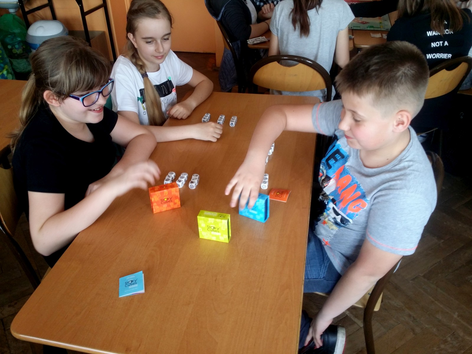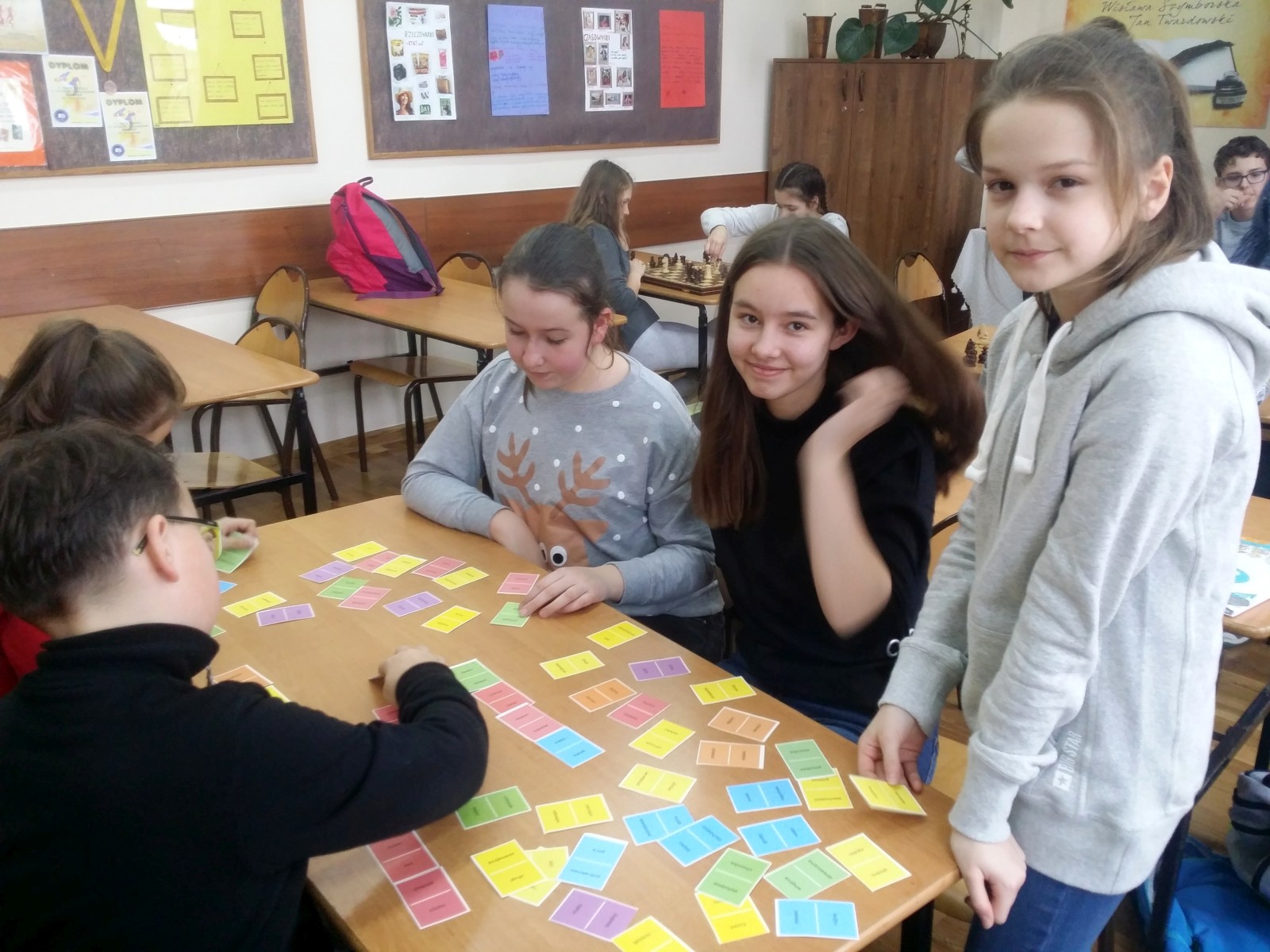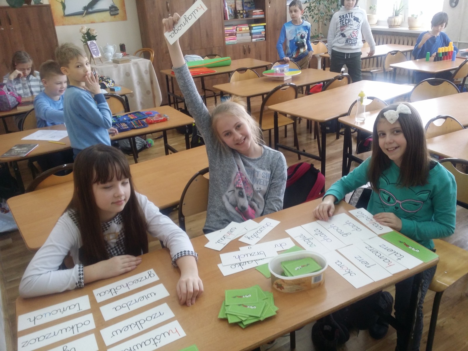 Ulubionym zajęciem dzieci w naszej szkole są gry planszowe a także ruchowe. Bardzo często wykorzystujemy czas na zajęcia z różnymi grami. Uczniowie bardzo lubią tego rodzaju zajęcia i coraz częściej wychodzą z propozycją przeznaczenia czasu na gry. Klasa 4d ustaliła, że jest to piątek. Wtedy wiadomo, że wybierają różne gry i w sposób aktywny spędzają czas. Wdrożenie gier w życie szkolne przynosi bardzo korzystne rezultaty. Na przykład gra „Ortograffiti” doskonale wpływa na ćwiczenie ortografii, utrwala pisownię trudnych wyrazów, doskonali zastosowanie zasad, umiejętność uczenia się od innych, spostrzeganie swoich błędów.