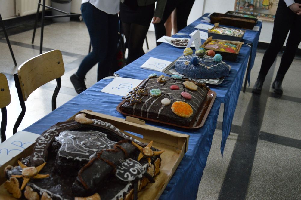 W tym roku świętowanie zaczęliśmy już tydzień temu od „Nocy z duchem Kopernika”. Kolejne dni upływały pod znakiem rywalizacji między klasami o miano tej, która najlepiej zna postać Mikołaja Kopernika i jego największe osiągnięcia. Na pierwszy ogień poszli młodzi literaci, którzy musieli wykazać się umiejętnościami poetyckimi w konkursie pt. „Wstrzymał Słońce, ruszył Ziemię, młodym twórcom dał natchnienie”. Kolejne zadanie wymagało znajomości faktów z życia uczonego, gdyż nie kto inny, lecz sam Kopernik przemierzał korytarze szkoły i zadawał klasom pytania. Uzdolnieni artystycznie uczniowie wykazali się natomiast wyobraźnią w konkursie na karykaturę wielkiego astronoma oraz w konkursie na wykonanie pojazdu kosmicznego z wykorzystaniem materiałów wtórnych. Ponadto uczniowie, niczym prawdziwy Master Chef, musieli wykazać się talentem kulinarnym i upiec pyszny piernik. Na sali gimnastycznej, w obecności licznie zebranych gości, odbył się uroczysty apel, podczas którego odbyła się ostatnia konkurencja – konkurs na sobowtóra Mikołaja Kopernika.