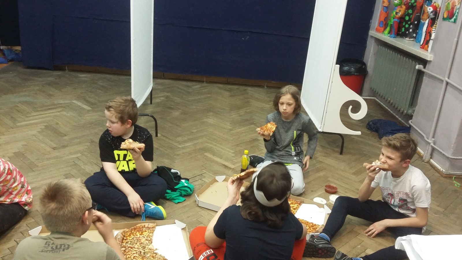O godzinie 19:00 uczniowie zebrali się przed salą 305. Każdy miał plecak, zapakowany po brzegi jedzeniem, ubraniami i innymi potrzebnymi rzeczami. Ponieważ noc dzieci spędzały w murach szkoły, niezbędny był śpiwór, ciepły koc i poduszki. Na początku należało przygotować się do próby: rozłożyć rekwizyty i przebrać się w stroje teatralne. Następnie wszyscy ochoczo zabrali się do gry. Przez kilka godzin ćwiczyli poszczególne kwestie przedstawienia. Powtarzali najważniejsze i najtrudniejsze sceny oraz wymyślali nowe. W trakcie próby zrobili sobie krótką przerwę, podczas której zjedli pizzę. Po ciężkiej, ale bardzo satysfakcjonującej pracy udało się stworzyć widowisko, którego efekt widoczny będzie dopiero na prawdziwej scenie. Wtedy wszystko się okaże, zwłaszcza w konfrontacji z publicznością.