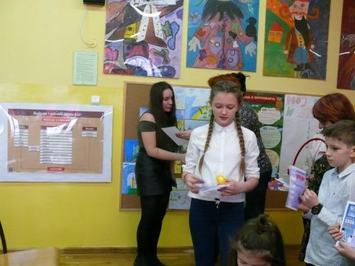 Przez dwie godziny w sali na trzecim piętrze rozbrzmiewała poezja w najlepszym wykonaniu. Podczas konkursu atmosfera między uczestnikami była bardzo miła i koleżeńska. Mimo stresu, wszystkie dzieci świetnie się bawiły, prezentując swój talent recytatorski. Po wysłuchaniu prezentacji komisja artystyczna: Joanna Trembasiewicz, Aldona Piwońska, Emilia Kozłowska, Elżbieta Nowak i Grażyna Sujewicz postanowiła nagrodzić Brunona Grabarę (1d), Gabrielę Marciniak (2c), Amelię Sobczyk (4d), Maję Walas (4d), Paulę Biskup (5c), Nadię Przygońską (6d) i Ninę Grabarę (7d). Laureaci reprezentować będą szkołę w kolejnych etapach konkursu.
