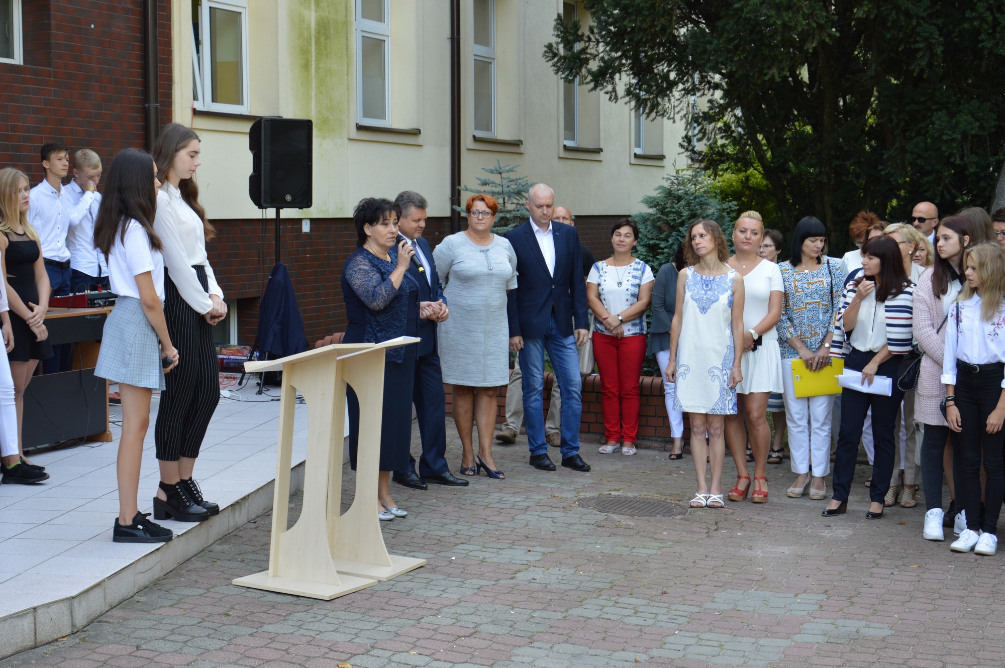 Podczas swojego wystąpienia dyrektor szkoły p. Elżbieta Pokojowa, życzyła wszystkim uczniom wielu sukcesów w nowym roku szkolnym. Szczególnie ciepło zostali powitani najmłodsi uczniowie, którzy rozpoczęli swoją edukacyjną przygodę. Wicedyrektor szkoły przedstawiła pierwszoklasistom i ich rodzicom wychowawców klas. Nie mogło też zabraknąć pierwszego wspólnego pamiątkowego zdjęcia.