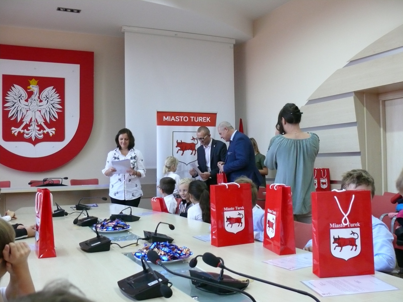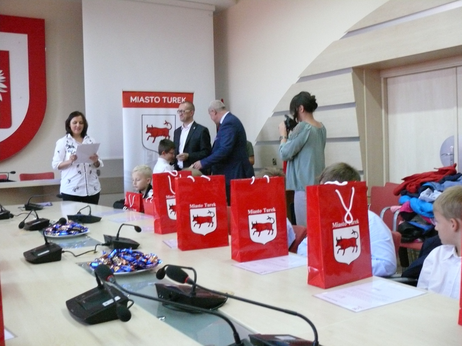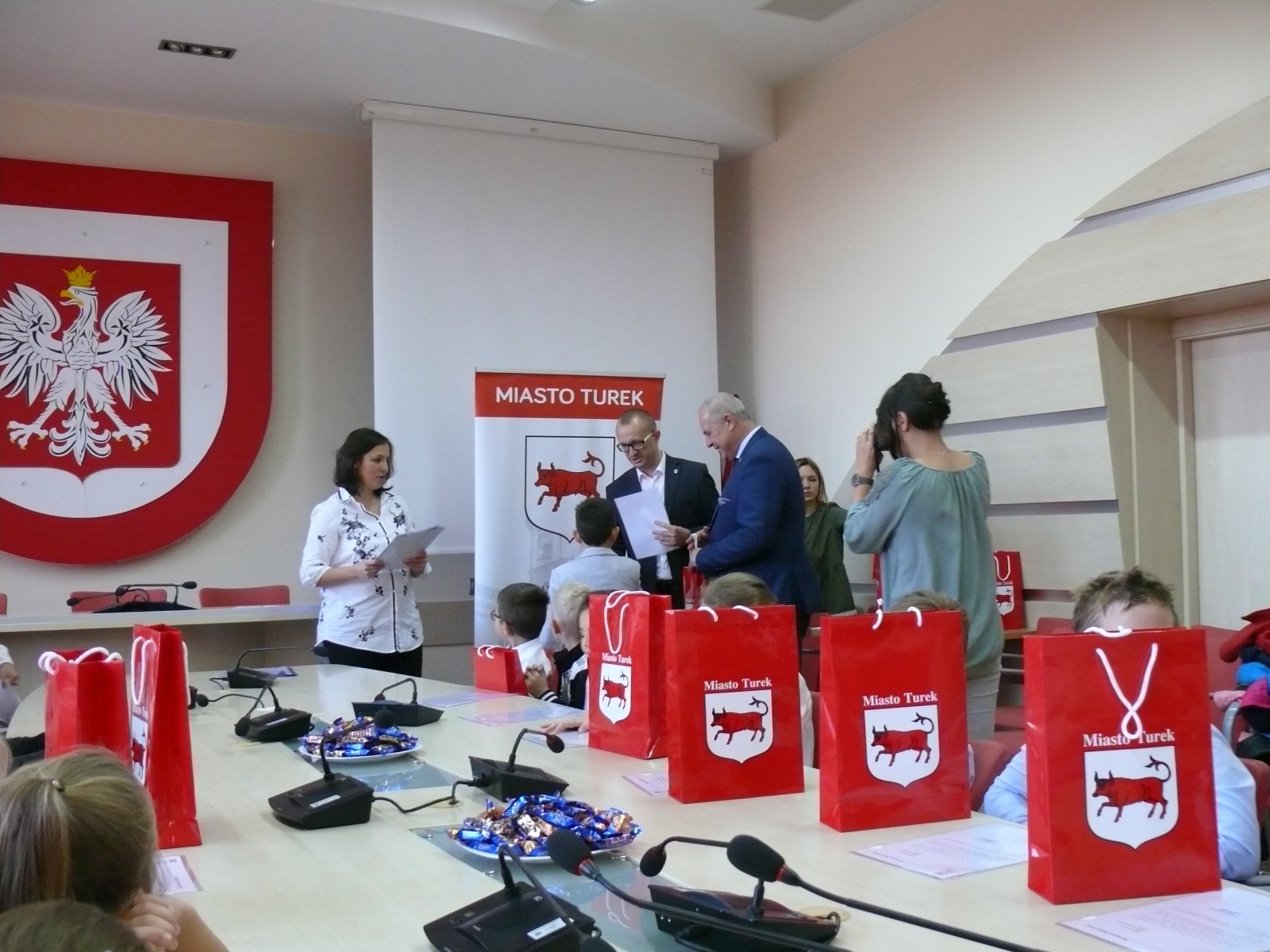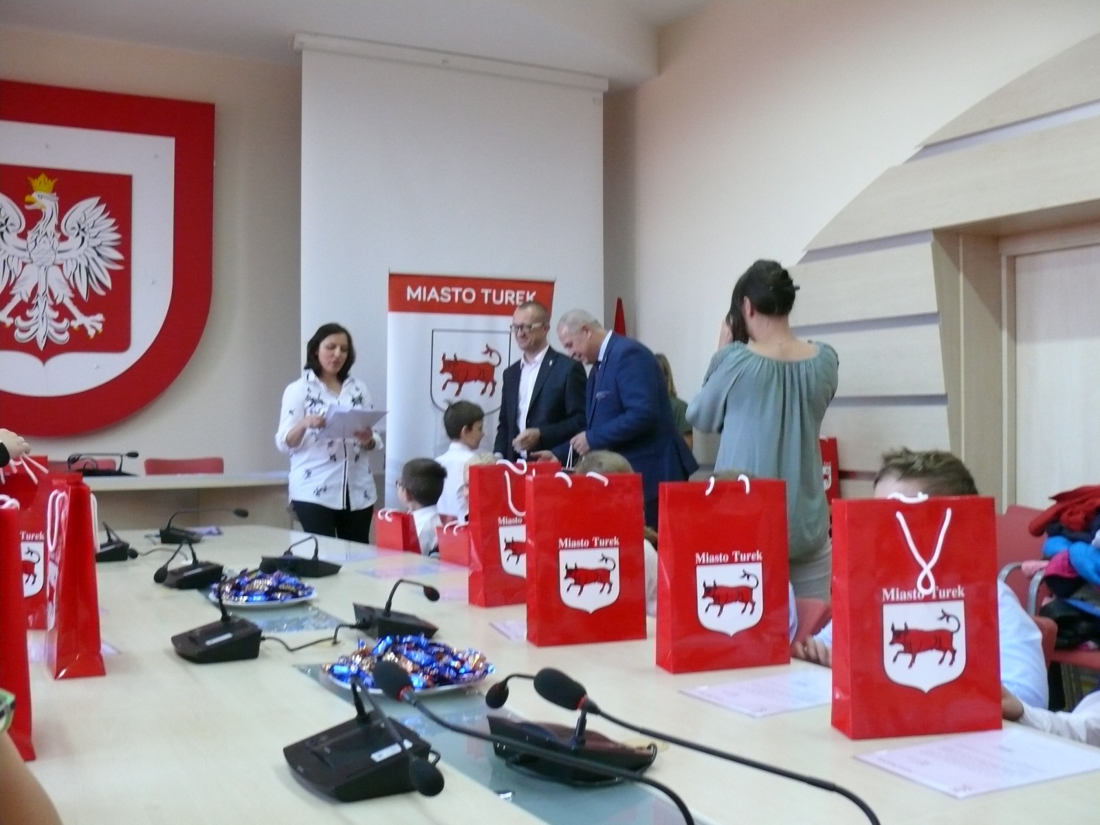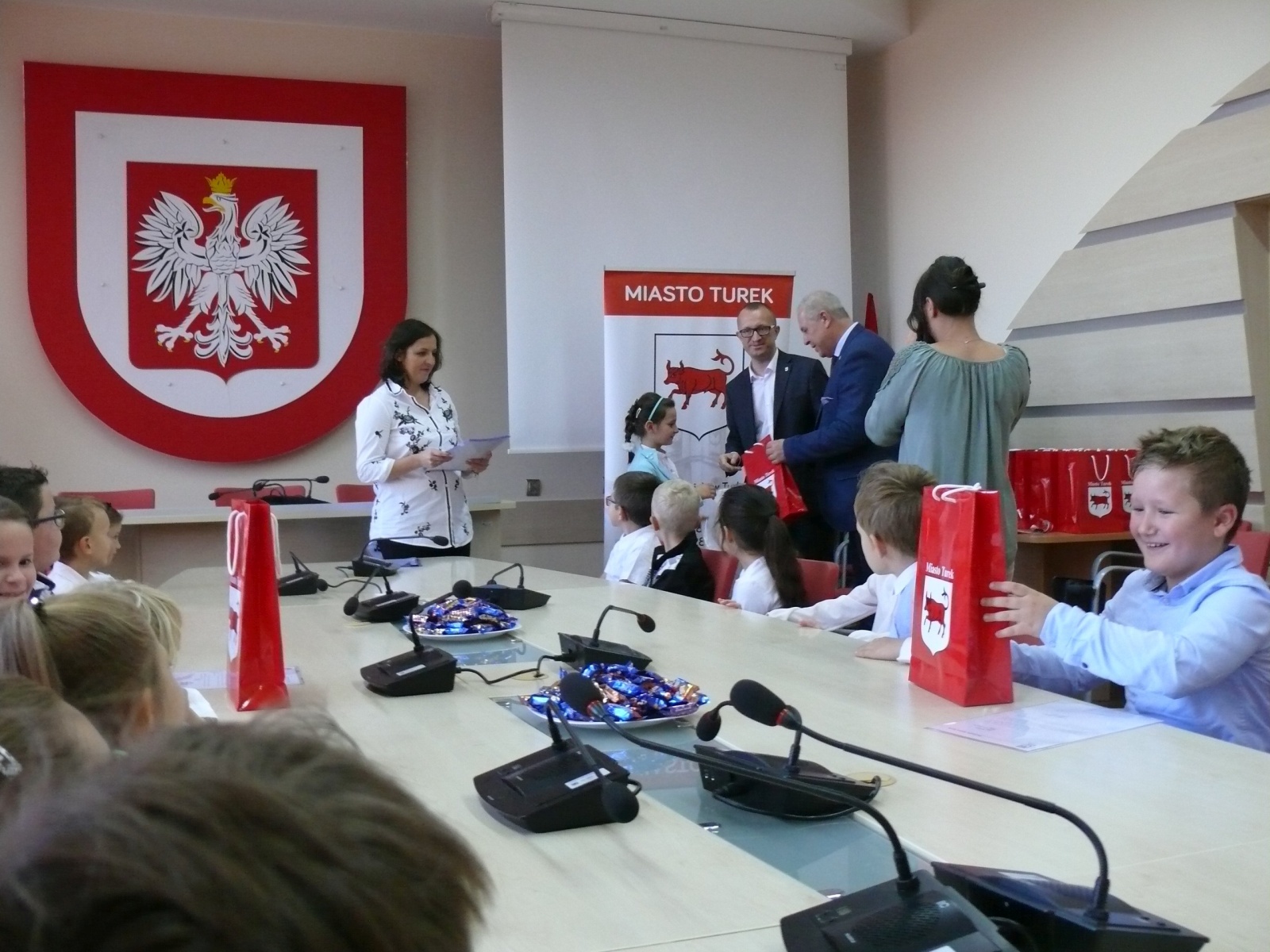 Podczas wizyty w UM włodarze miasta uhonorowali laureatów, wręczając im pamiątkowe dyplomy i upominki. Dzieci były bardzo przejęte wizytą i dumne z osiągniętego sukcesu.