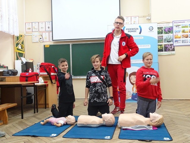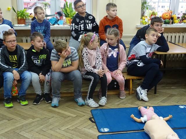Uczniowie zapoznali się z materiałami edukacyjnymi, dotyczącymi zasad udzielania pierwszej pomocy, filmami instruktażowymi, w których prezentowane były pożądane zachowania w przypadku: ataku padaczki, zakrztuszenia, rany z ciałem obcym i w wielu innych sytuacjach, w których wymagane są rozważne działania.