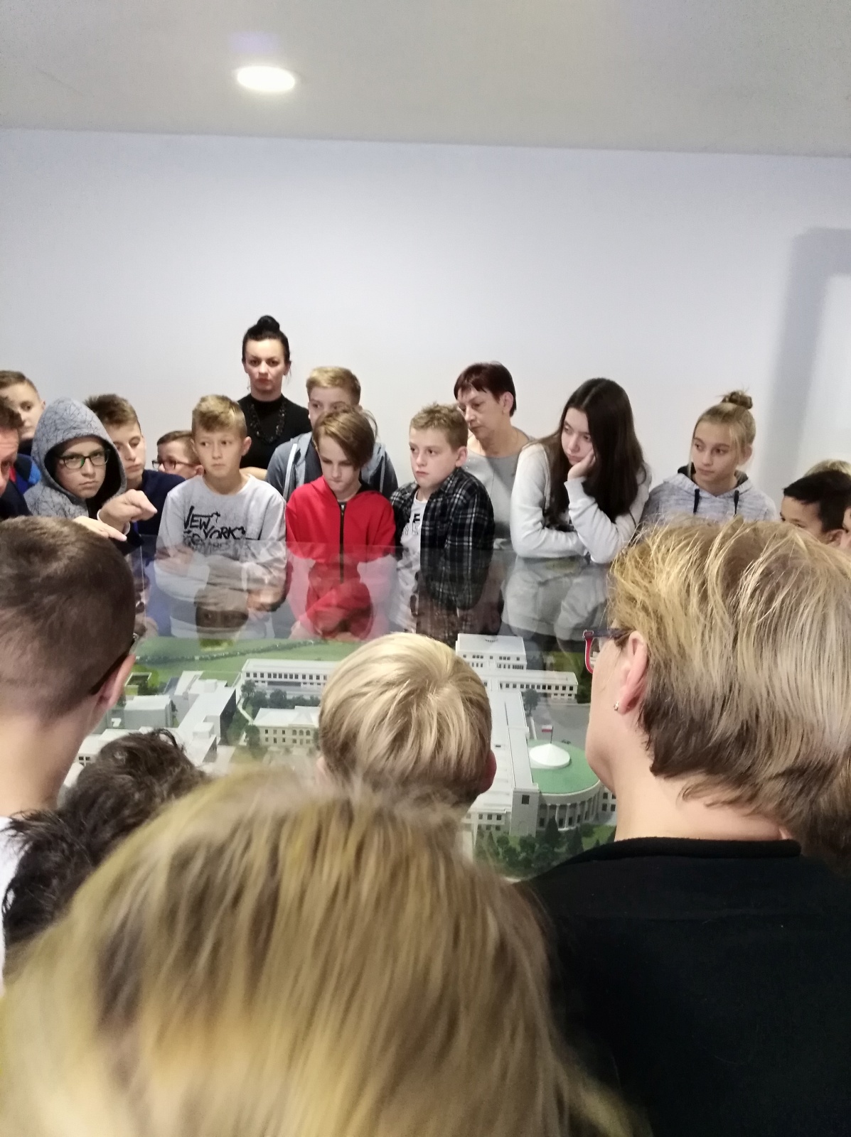Zwiedzanie rozpoczęło się wykładem przewodnika na temat historii polskiego parlamentaryzmu. Następnie uczestnicy wycieczki zwiedzali budynek Sejmu Rzeczypospolitej Polskiej. Przewodnik wspólnie z Posłem oprowadzali uczniów po galerii Sali Posiedzeń Sejmu, holu głównym, gdzie znajduje się tablica upamiętniająca posłów II Rzeczypospolitej, którzy zginęli w czasie II wojny światowej oraz tablica upamiętniająca parlamentarzystów, którzy zginęli w katastrofie lotniczej pod Smoleńskiem. Uczniowie zadawali wiele pytań dotyczących Sejmu, byli ciekawi, jak wygląda praca Posła. Zwiedzanie Sejmu uwiecznione zostało na wspólnym zdjęciu