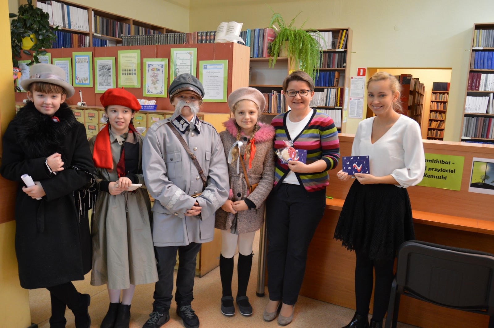 W wyjątkowy nastrój tego uroczystego dnia wprowadził nas Teatr „Szpilka". Uczniowie, kontynuując regionalny projekt w technice cieni, przedstawili montaż słowno – muzyczny pt. „Jak to z niepodległością w Turku było?". W historycznej inscenizacji wziął udział dyrektor Muzeum Miasta Turku p. Bartosz Stachowiak.