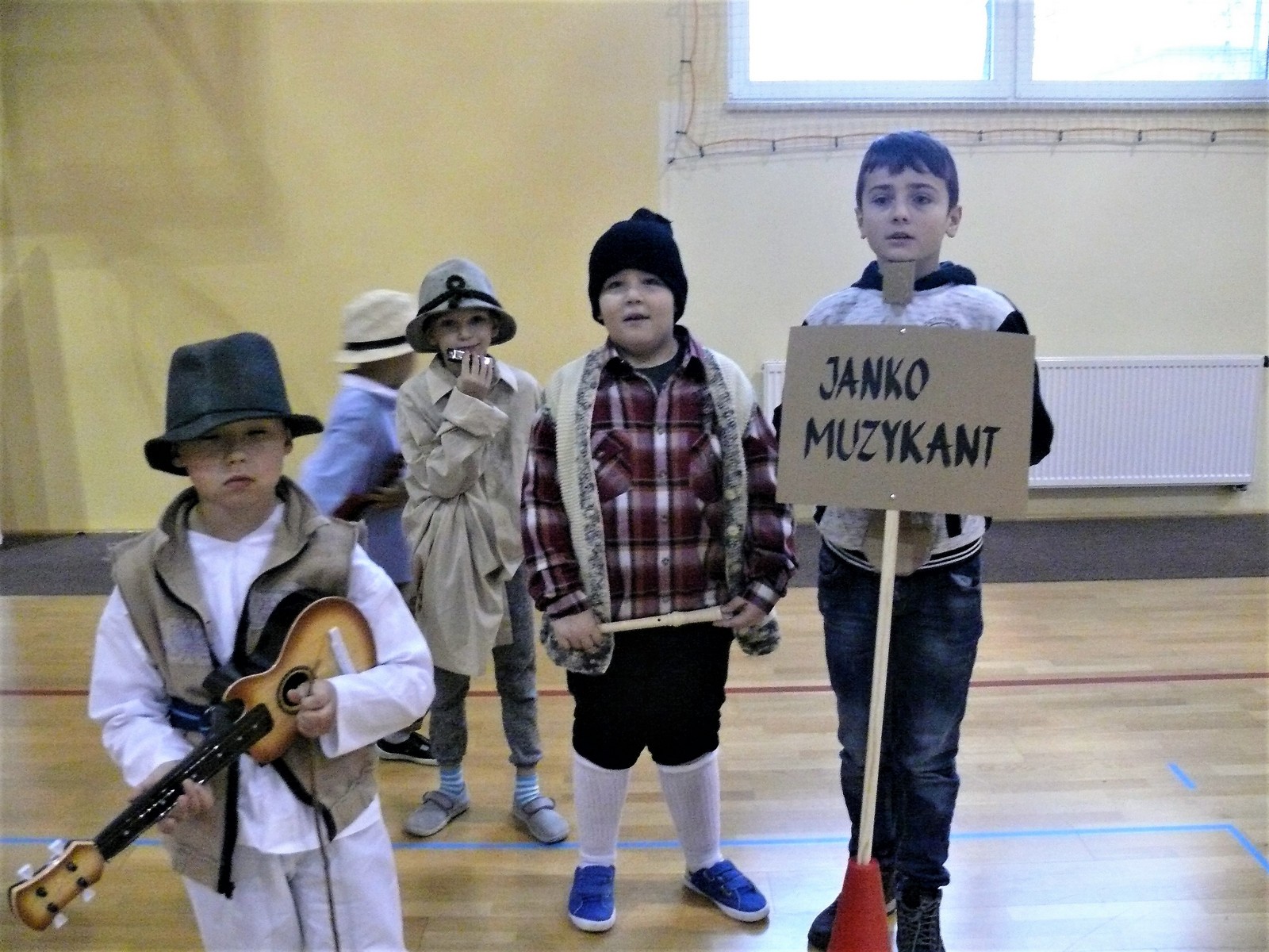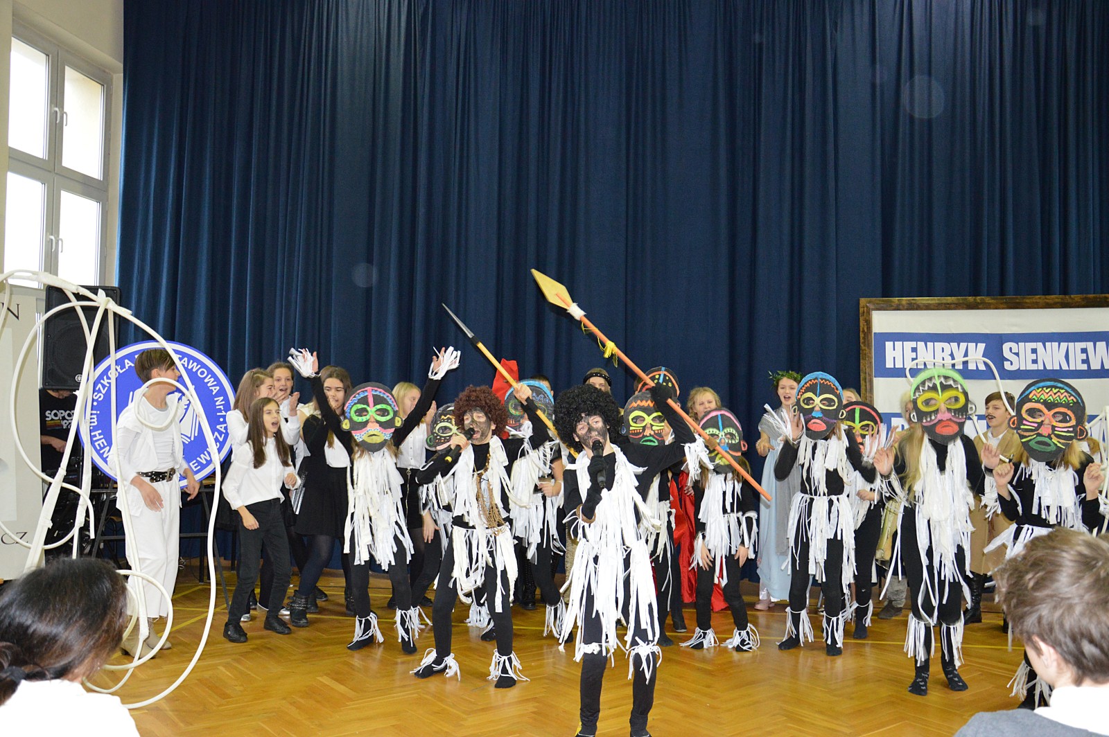 Młodzi aktorzy w zabawny sposób przybliżyli twórczość Henryka Sienkiewicza. Na spotkanie przybyli bohaterowie z „Potopu”, „Ogniem i mieczem”, „ Krzyżaków”, „W pustyni i w puszczy” i innych utworów. Przedstawienie wzbudzało zaciekawienie, humor a także element grozy. Przykładem była scena, kiedy kat miał ściąć głowę Zbyszka z Bogdańca, ale Danusia wstawiła się za nim wypowiadając słowa: „Mój ci on jest”. Zaskoczeniem dla publiczności było pojawienie się współczesnego listonosza, który przybiegł z listem od samego Sienkiewicza. Na spotkanie przybył w końcu on sam i odczytał „Dekalog” zaczynający się od słów: „ Jam jest Henryk Sienkiewicz, Wielka Wielkość Twoja, którym Cię wywiódł na pole sławy wszechświatowej”. Weseli Murzyni zatańczyli wg afrykańskich rytmów. Przedstawienie teatralne wzbogacały efekty plastyczne oraz zachwycający śpiew uczniów. Amelia Sobczyk i Bartosz Dziamara wzruszyli wszystkich, kiedy wykonali piosenkę „Dumka na dwa serca”. Na koniec przedstawienia swobodny rap i słowa piosenki podkreśliły, że Henryk Sienkiewicz jest Patronem znanym i lubianym.