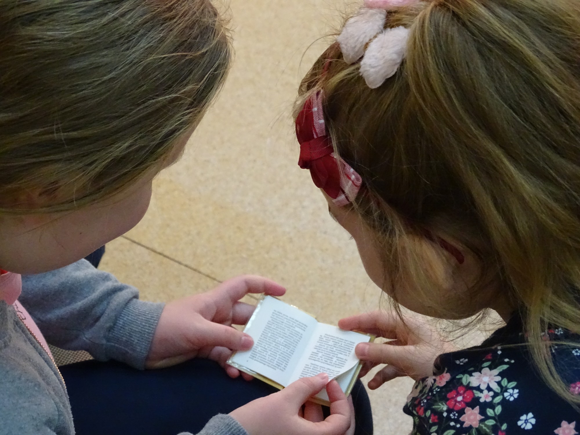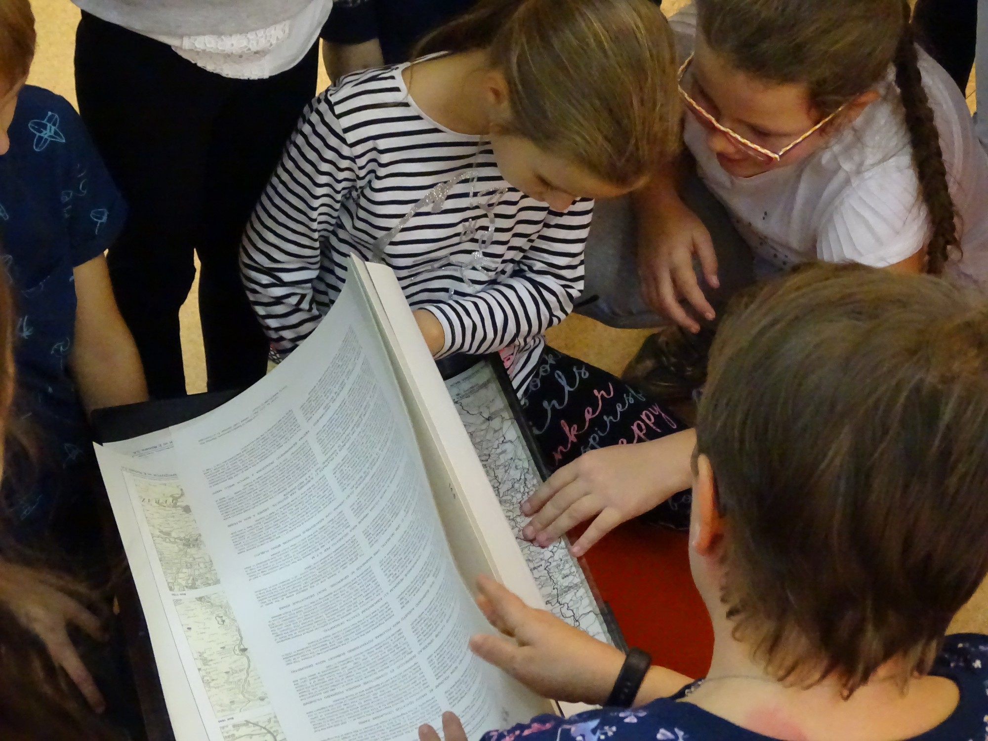Spotkanie rozpoczęło się od pokazu oryginalnych eksponatów tej biblioteki, najmniejszych i największych egzemplarzy książek. Uczniowie z dużym zainteresowaniem oglądali wyjątkowe okazy.