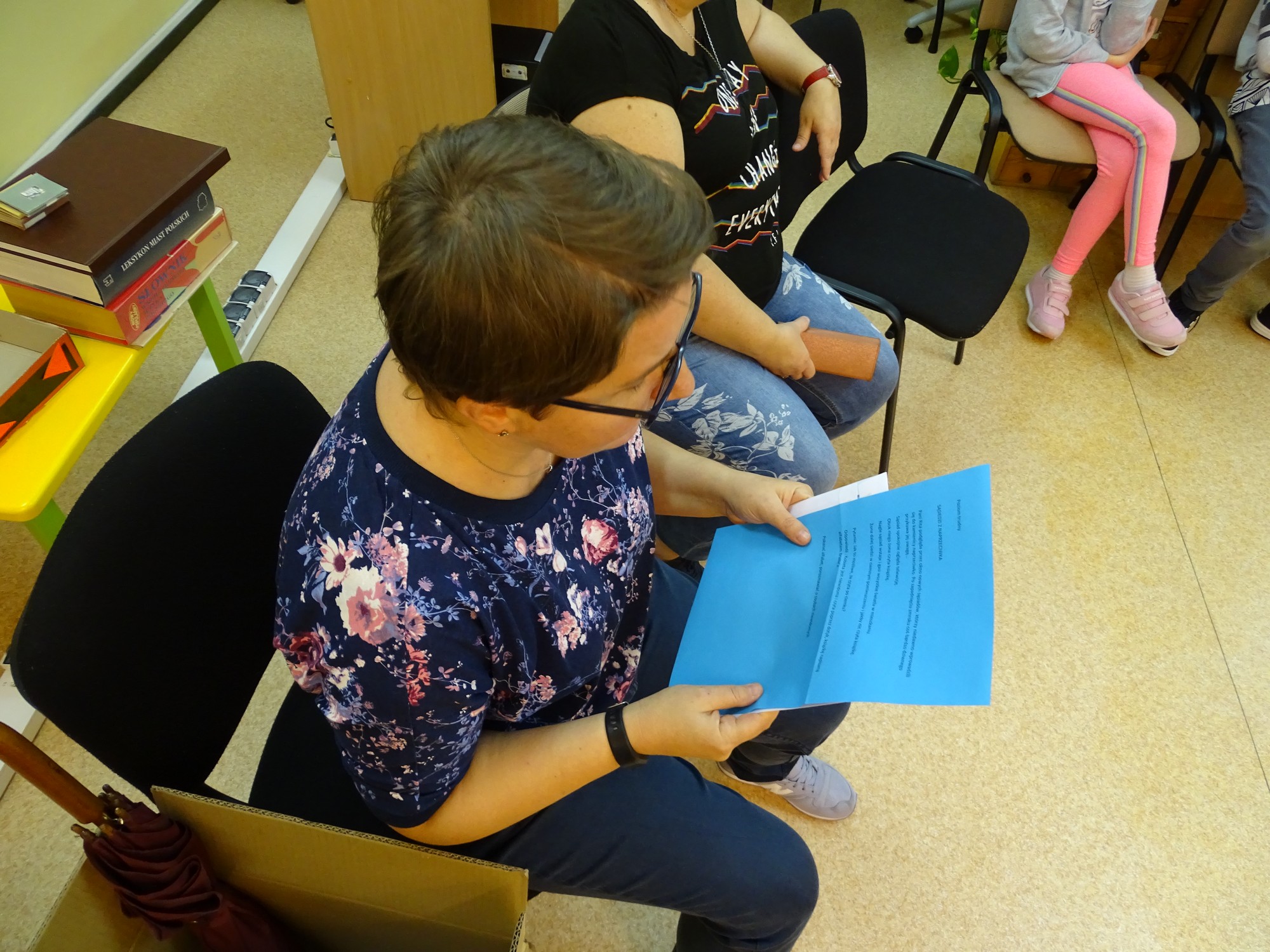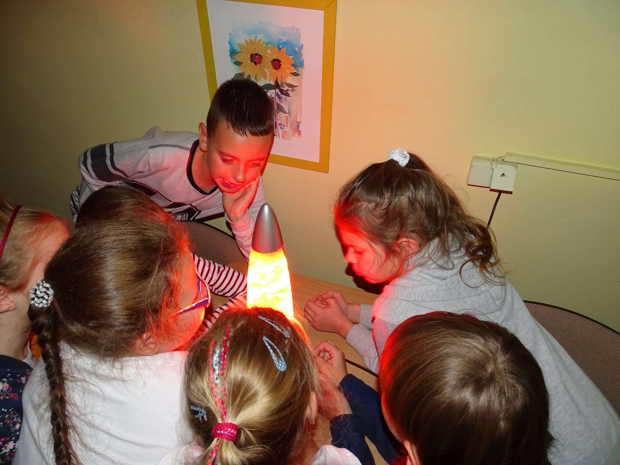 Wreszcie, gdy za oknem zupełnie się ściemniło, przyszedł czas na zwiedzanie niedostępnych na co dzień zakamarków biblioteki. Wszyscy z wielkim zainteresowaniem „buszowali” między regałami, odkrywając różne ciekawe książki, by wreszcie znaleźć się w tajemniczym pokoju, kryjącym wielką „magiczną” niespodziankę.