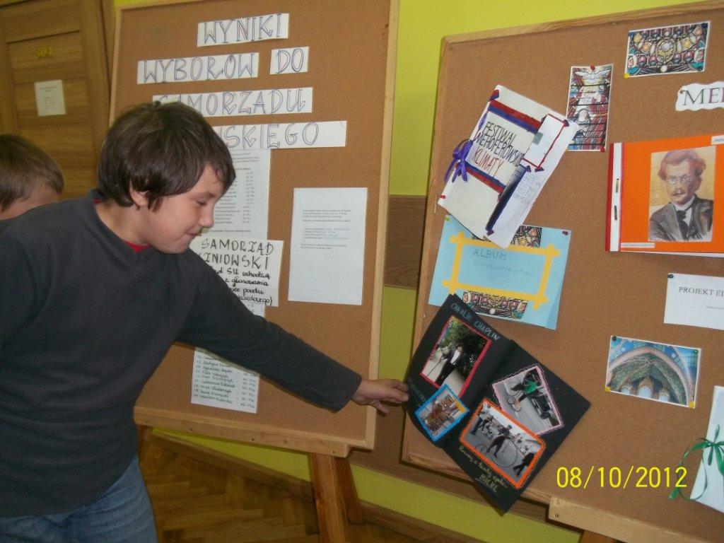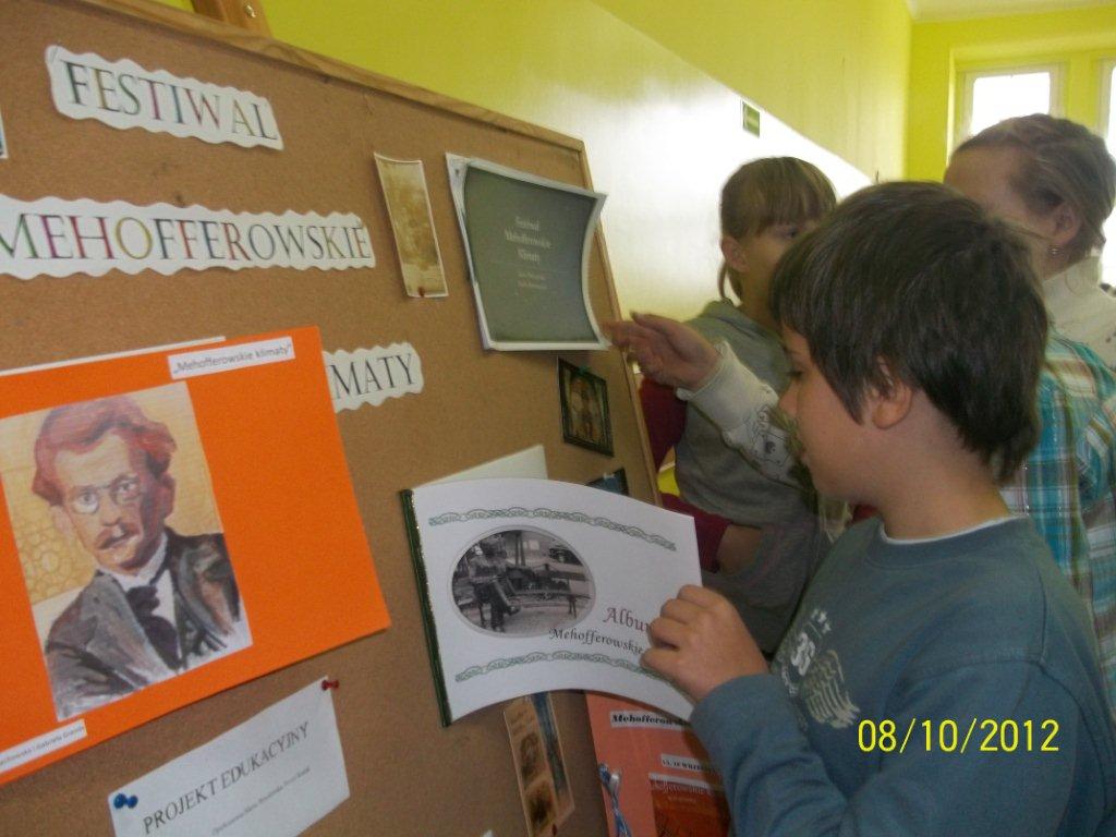W dniach 22.10-26.10.12 roku w naszej szkole można było zobaczyć piękne albumy uczniów związane z festiwalem „Klimaty Mehofferowskie w Turku”. Albumy te były wytworem projektu ogłoszonego przez panią Iwonę Rosiak i panią Martę Wesołowską- nauczycielki historii. Uczniowie mieli za zadanie zrobić album bądź filmik kilkunasto-minutowy o historii Mehoffera i jego czasów, a także uwzględnić atrakcje, które czekały na Turkowian i mieszkańców okolicy w czasie wrześniowego festiwalu, m.in. kataryniarz czy biblioteczka z kawiarenką. Dzieci miały miesiąc na realizację projektu, który wykonywały w parach bądź w zespole. Albumy uczniów przedstawione na wystawce w szkole zbudziły ogromne zainteresowanie oraz zachwyt. Dzieci wykonały również filmiki, które wspólnie oglądaliśmy w czasie lekcji. Wszystkim uczniom, którzy wzięli udział w projekcie gratulujemy zapału i kreatywności.