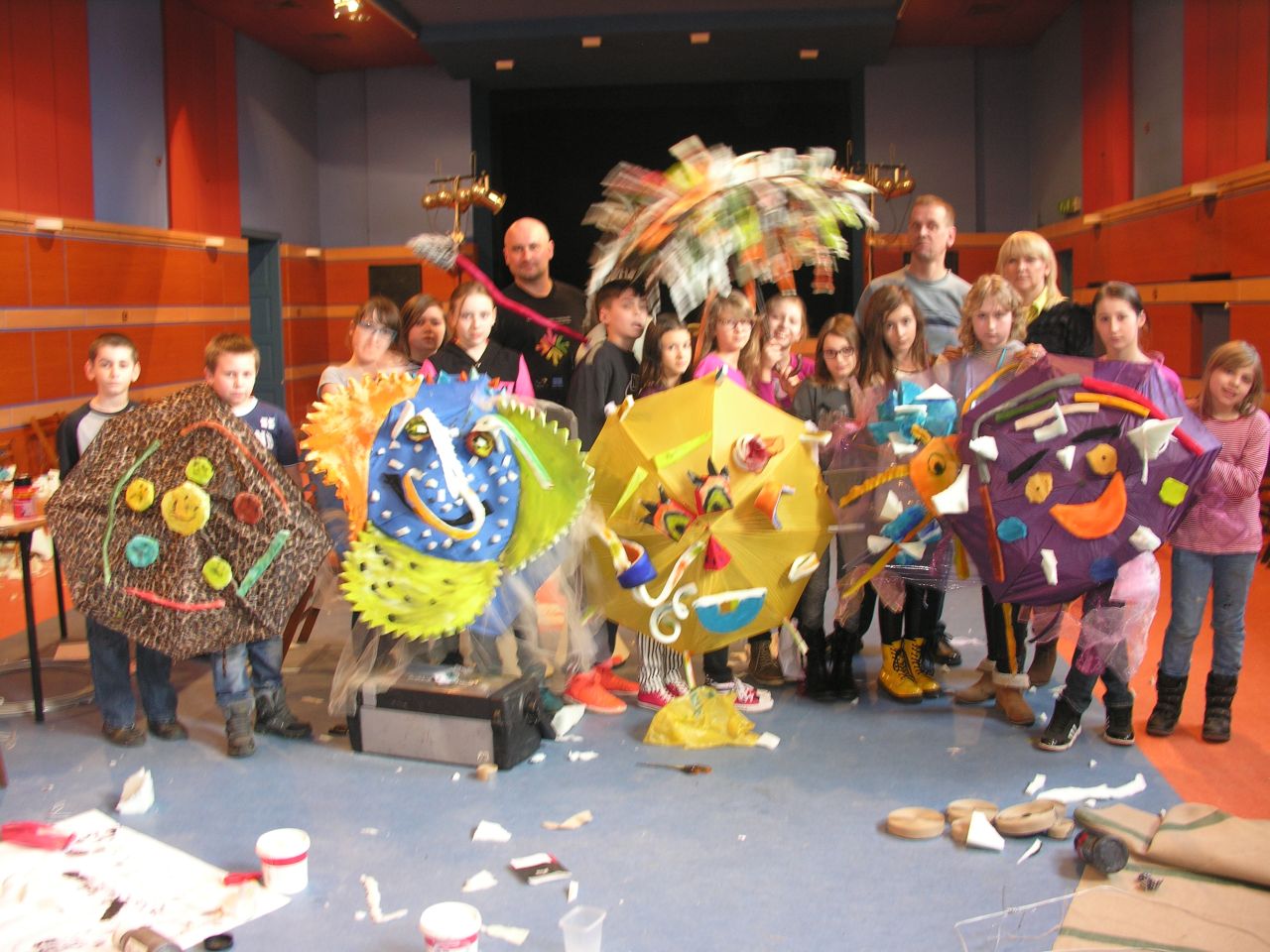 Warsztaty prowadzili reżyser Teatru Lalkowego z Wrocławia, Paweł Pawlik wraz z plastykiem Piotrem Kochanowskim, Z naszej szkoły uczestniczyła grupa dzieci z kółka artystycznego oraz członkowie Teatru Szpilka.