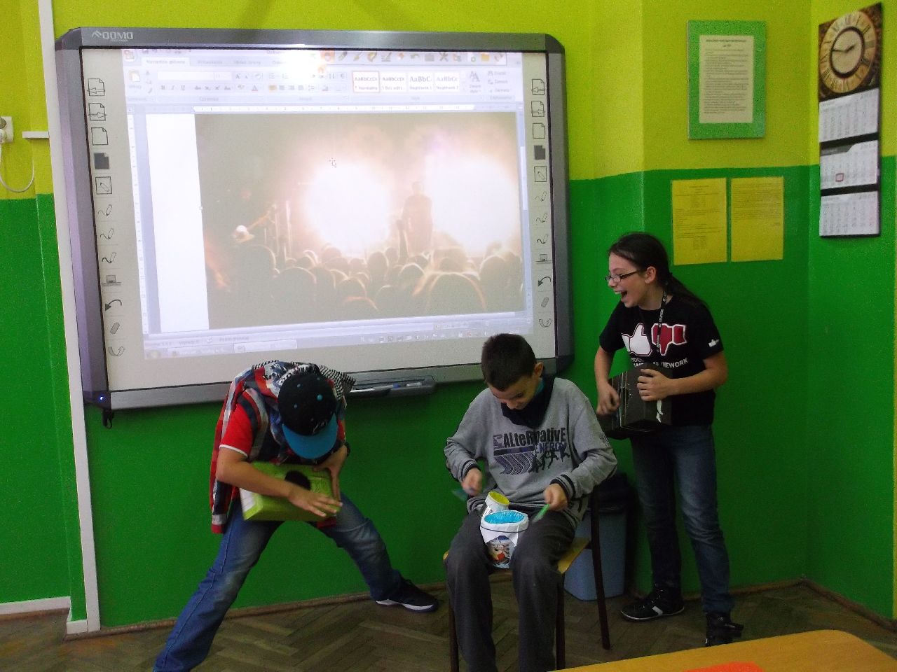 Wrzesień upłynął nam bardzo muzycznie. Śpiewaliśmy największe hity z MTV, rozwiązywaliśmy quizy i wykonywaliśmy instrumenty muzyczne. Jeżeli chcecie poznać historię coca-coli lub dowiedzieć się dlaczego nowojorskie taksówki są koloru żółtego, to zapraszamy w każdą środę o godz. 16.00 do sali 303.