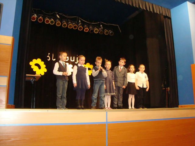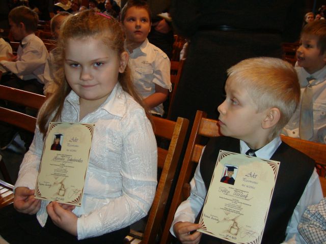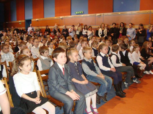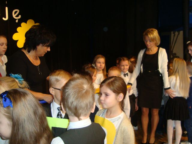 Gościem honorowym była dyrektor szkoły p. Elżbieta Pokojowa. Sala MDK-u była wypełniona po brzegi, gdyż na uroczystość przyszło wielu rodziców i dziadków naszych Pierwszoklasistów.