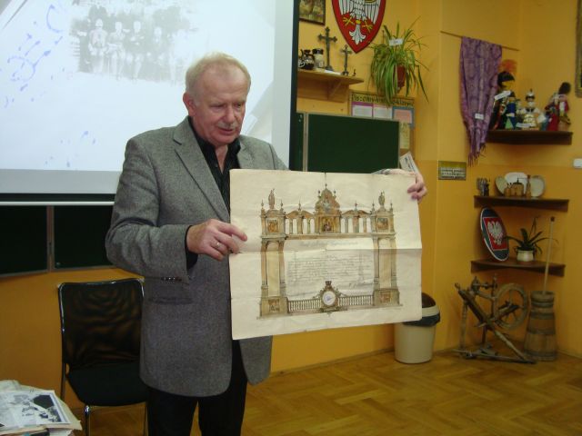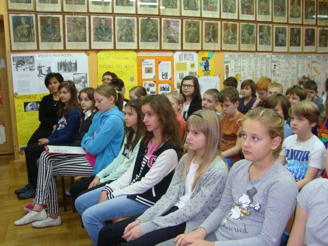 Pan Tadeusz w niezwykle barwny i interesujący sposób roztoczył przed uczniami wizję naszego miasta w czasach, gdy Polski nie było na mapach Europy. Opowiadał o znanych postaciach z historii naszego miasta: Stanisławie Kączkowskim, Wincentym Milewskim, małżeństwie państwa Kozłowskich i wielu innych patriotach, dzięki którym żyjemy dziś w wolnym kraju.
