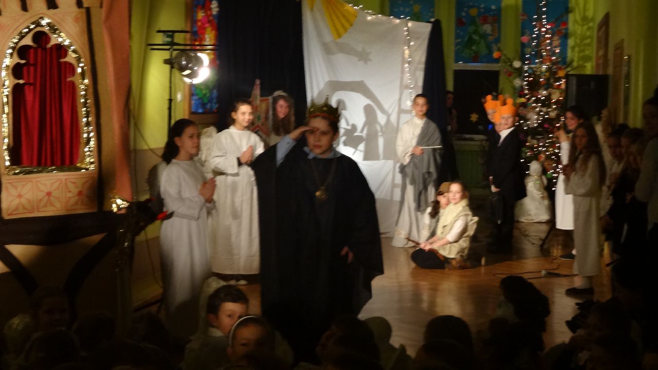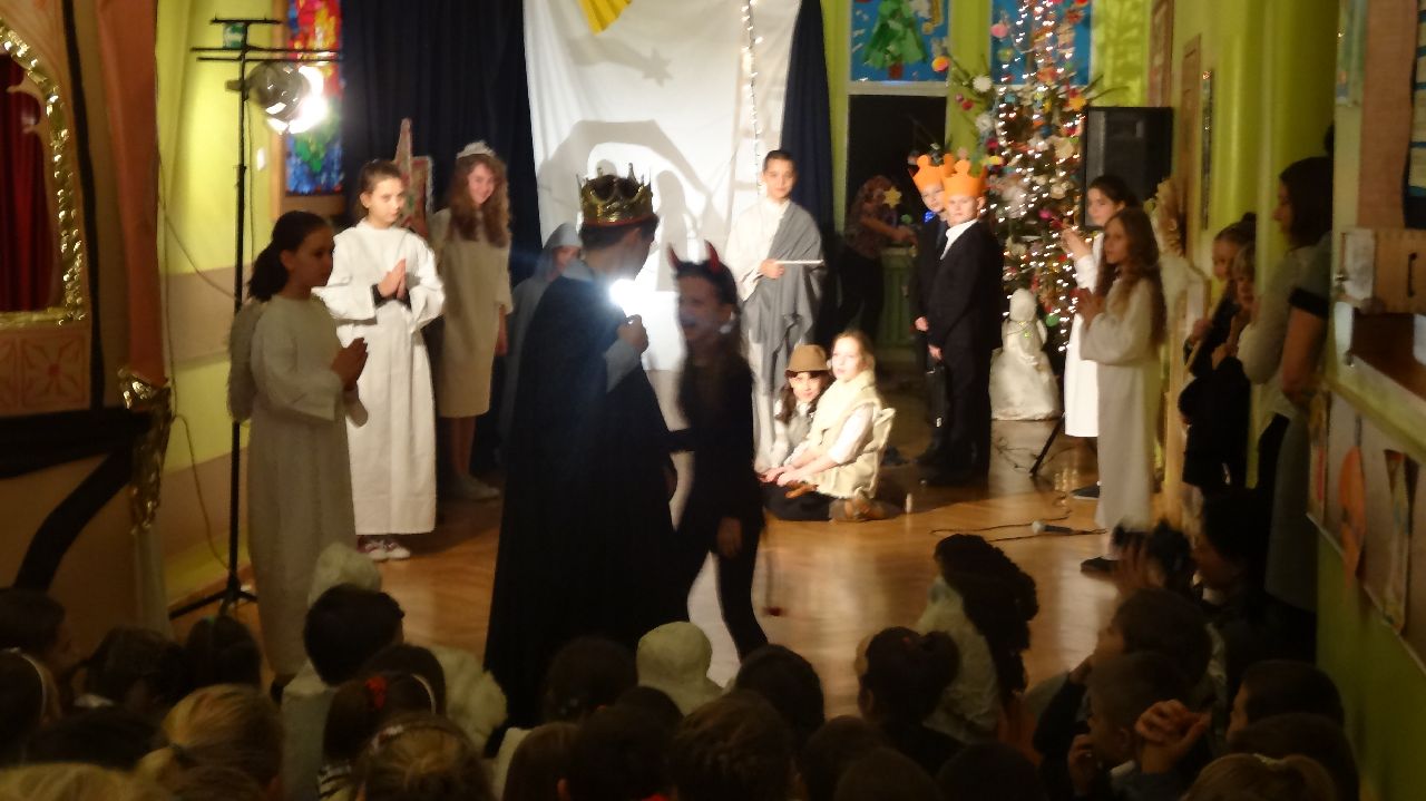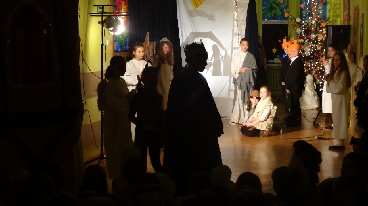 Jasełka przygotował szkolny teatr „Szpilka”. Scenariusz napisał uczeń Maciej Adamiak, który reżyserował spektakl i brawurowo wcielił się w rolę Heroda.