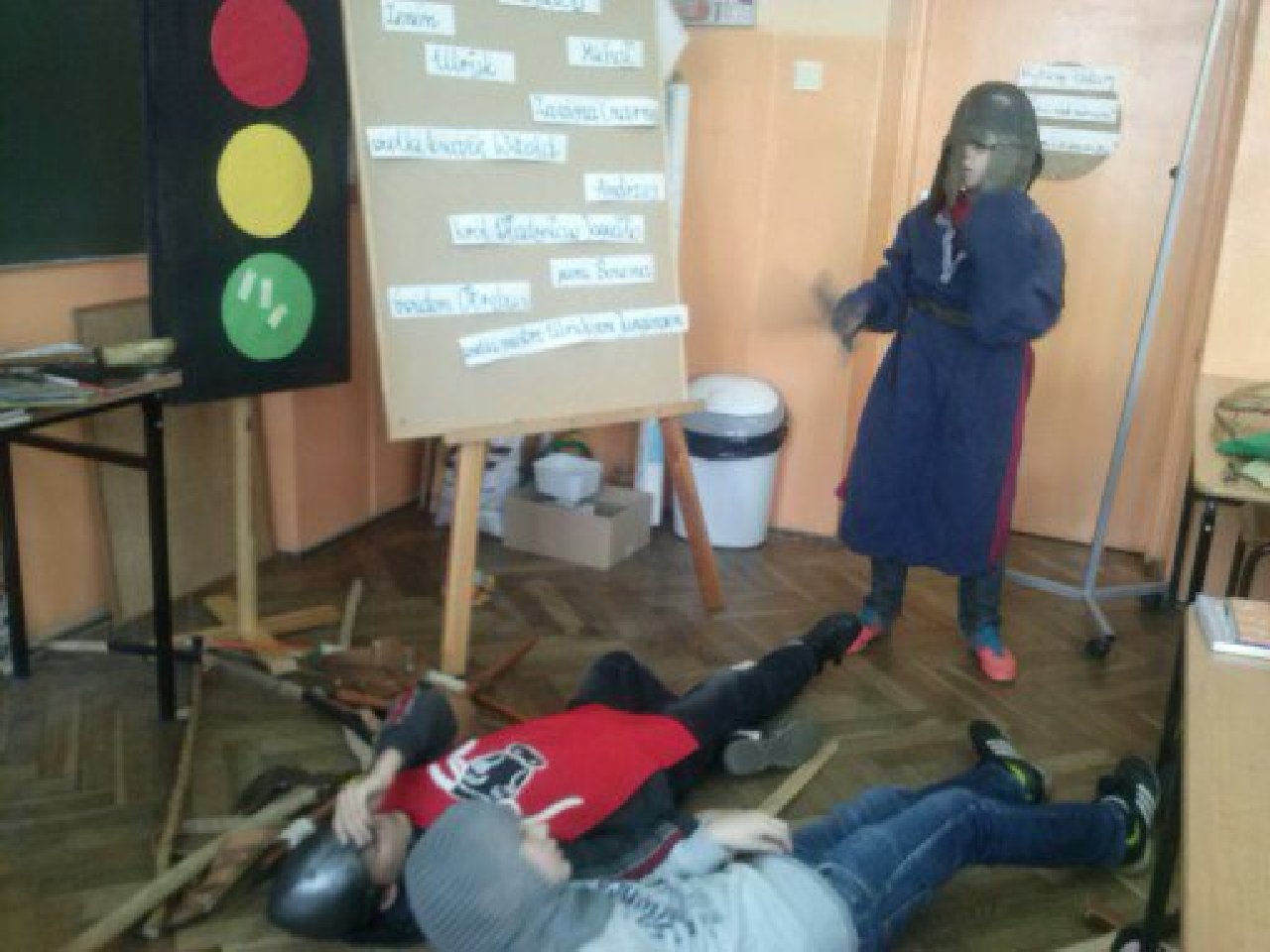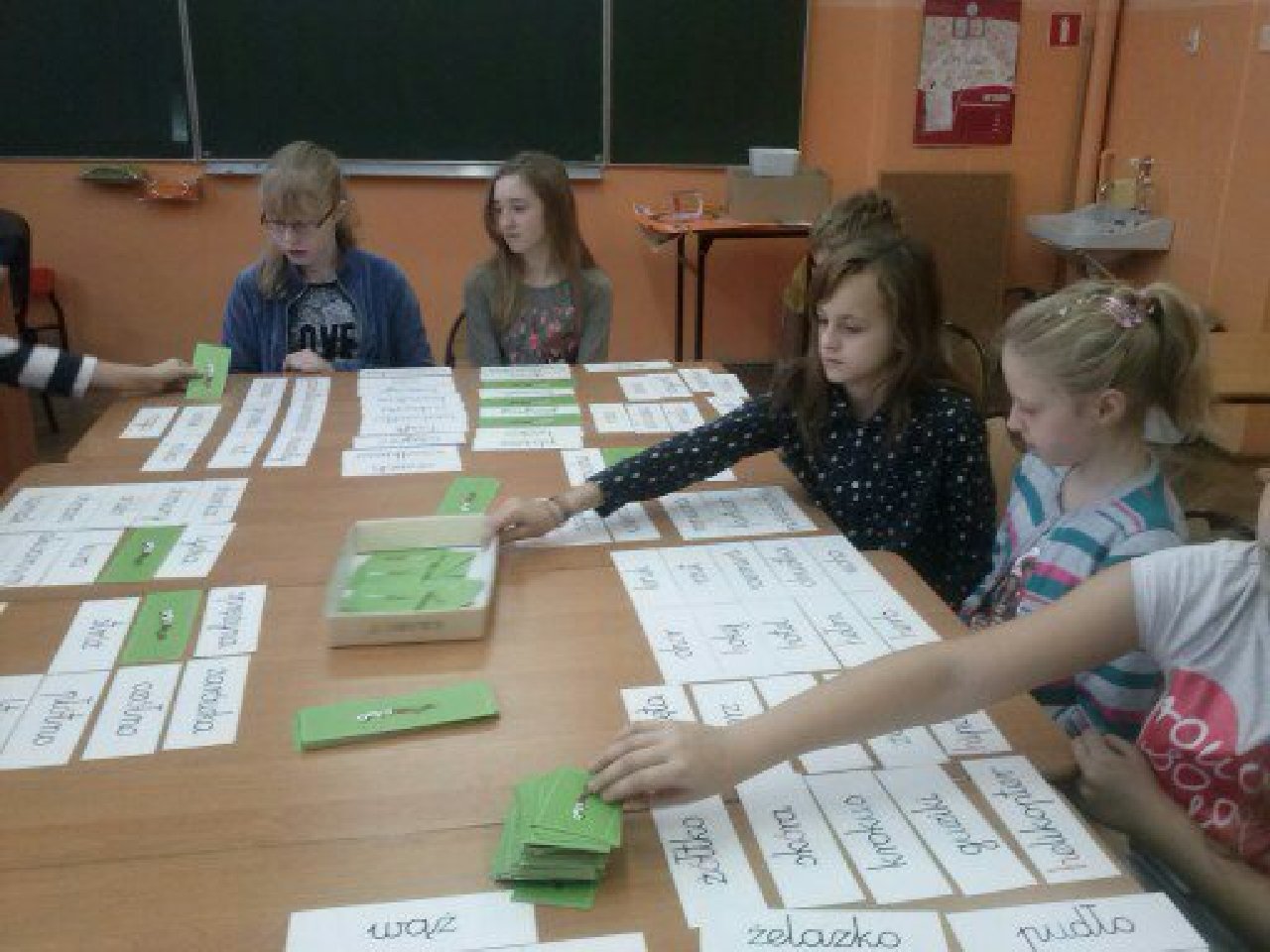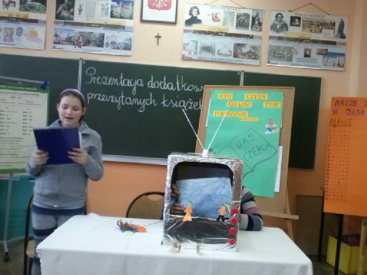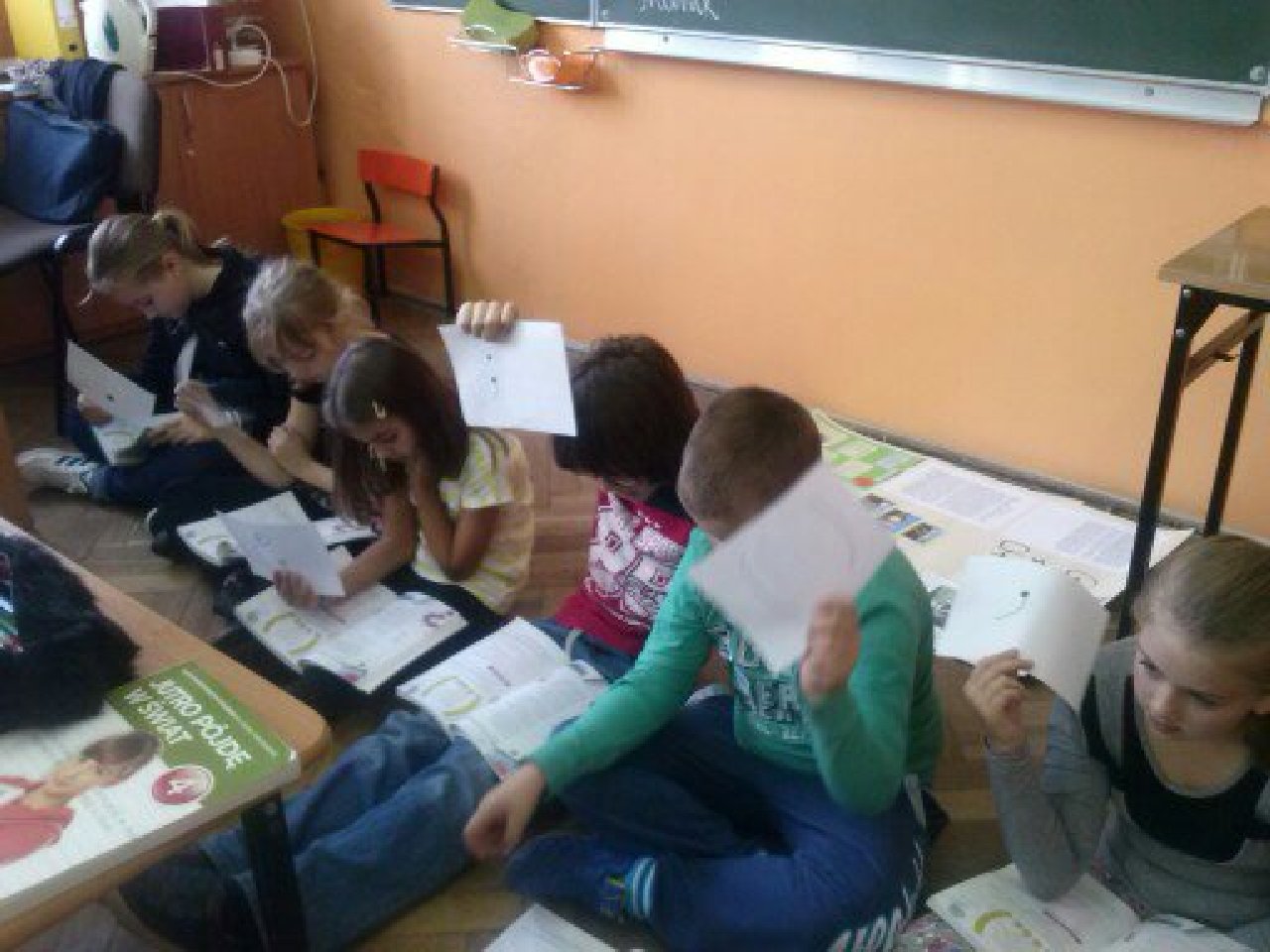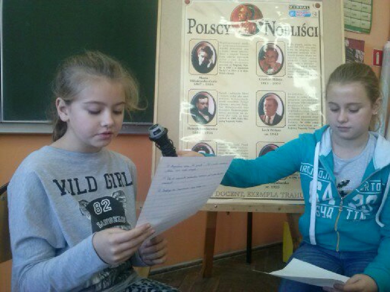 Lekcje języka polskiego to często zabawa, odgrywanie ról, swobodna interpretacja utworów literackich, prezentacja dodatkowo przeczytanych książek, spotkania z historią, a nawet wywiady z Noblistami. Dużym zainteresowaniem cieszą się konkursy wiedzowe, które organizujemy na podsumowanie, utrwalenie i oczywiście sprawdzenie wiedzy z danego działu podręcznika. A że odbywa się to w atrakcyjnej formie, to dzieci chętnie uczestniczą i sprawdzają swoją. Wszystko jest tak zorganizowane, że nauczyciel jest tylko obserwatorem lub uczestnikiem zabaw.