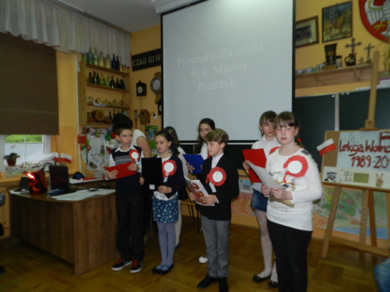 W dniu 3 czerwca w naszej szkole ruszyła akcja MEN „ Lekcja Wolności” zorganizowana z okazji obchodów 25. Rocznicy pierwszych wolnych wyborów w Polsce. Święto wolności odbyło się z udziałem szczególnego gościa - Panią Haliną Łukaszewską -  turkowianką , absolwentką  naszej szkoły, obecnie emerytowanym prawnikiem. Pani Halina wspominała wydarzenia związane z kształtowaniem wolnej Polski, ze szczególnym uwzględnieniem wydarzeń 1989roku.W wypowiedziach naszego gościa nie zabrakło odwołań do osobistych wspomnień z czasów studenckich i refleksji  patriotycznych. „Lekcję Wolności” uatrakcyjnił występ uczniów klasy 4e .Uczniowie piosenkami Jana Pietrzaka i Jacka Kaczmarskiego, a także  za pomocą znaków i  symboli przedstawili „Polską drogę do wolności”.