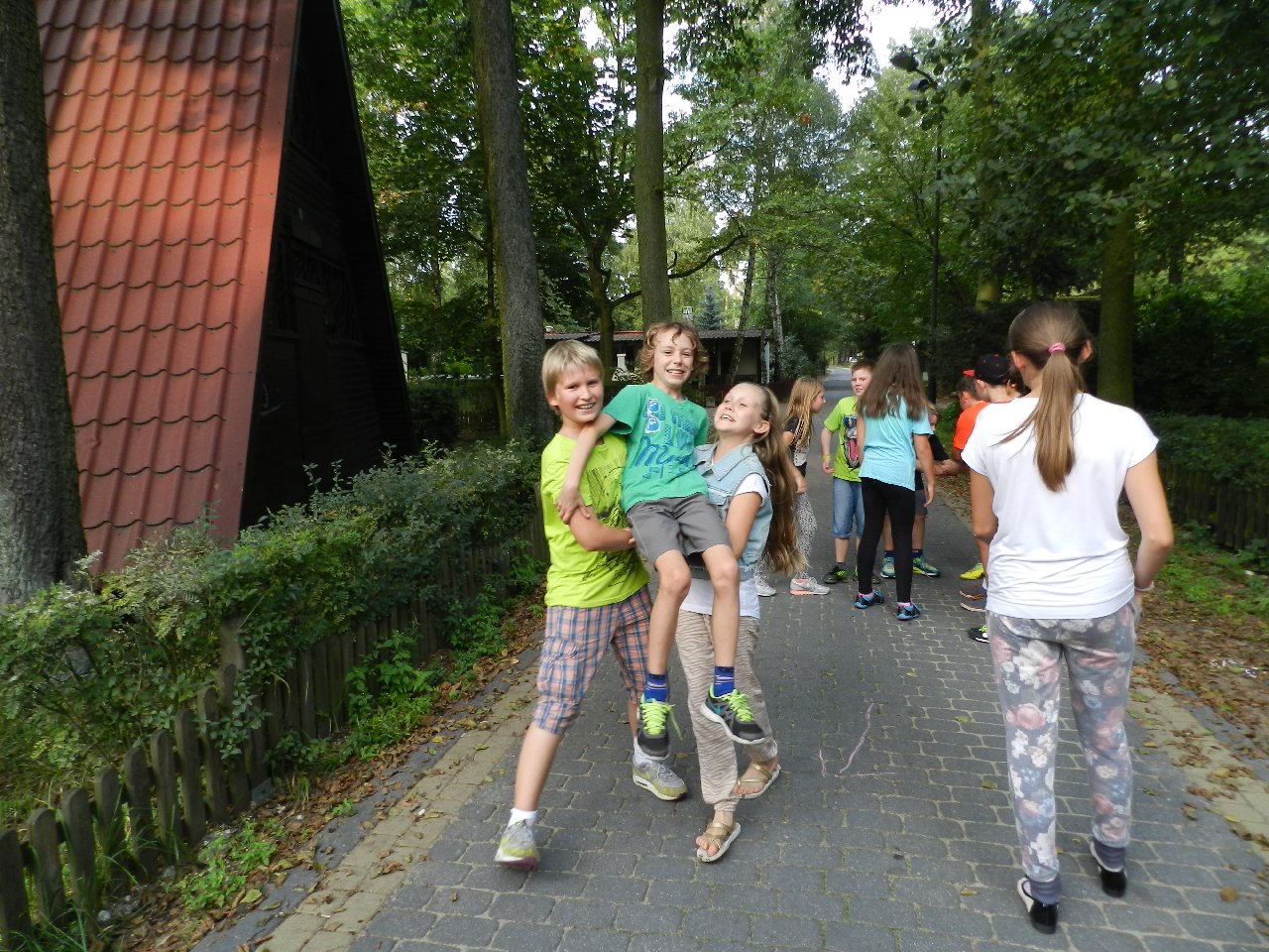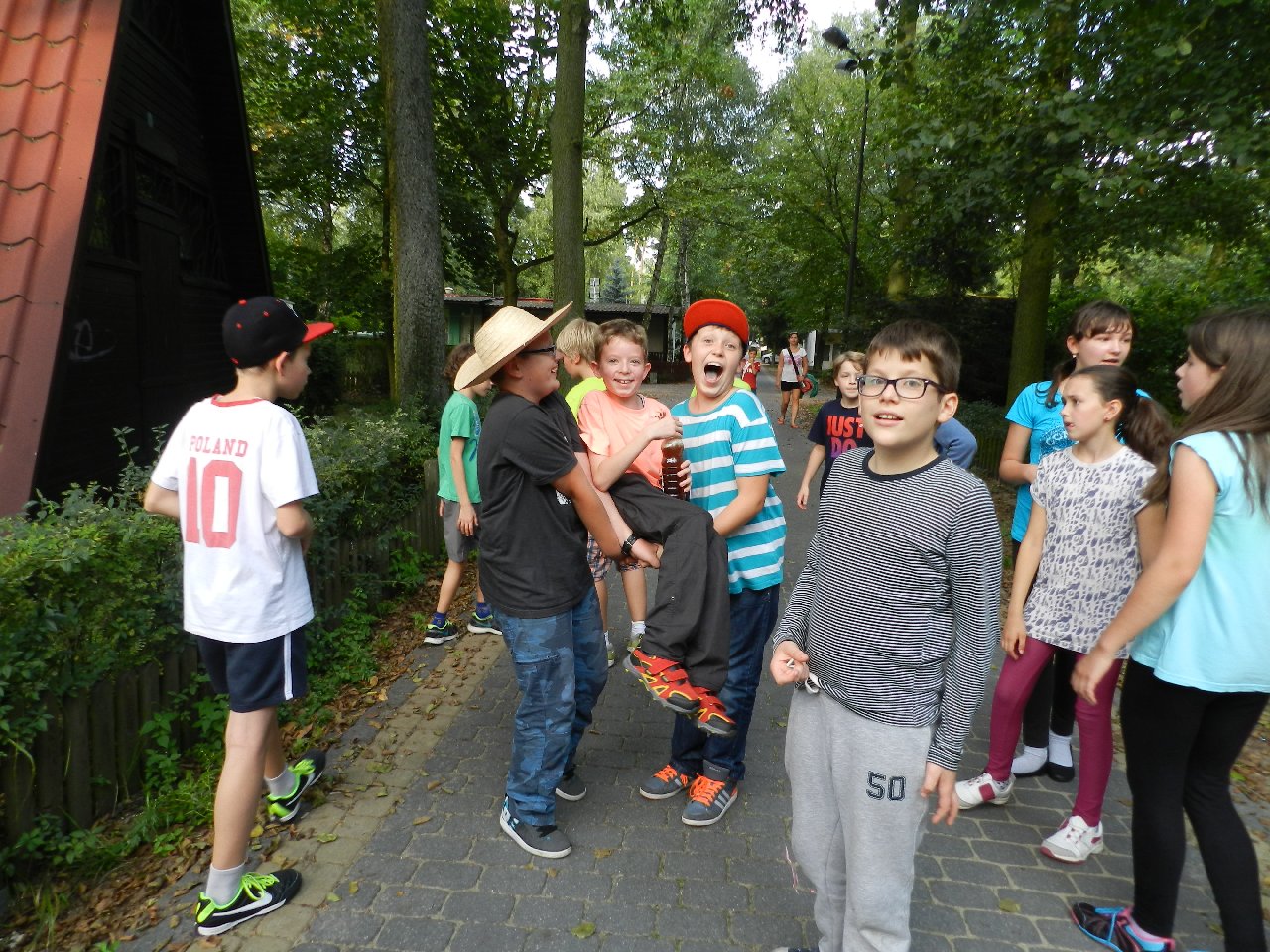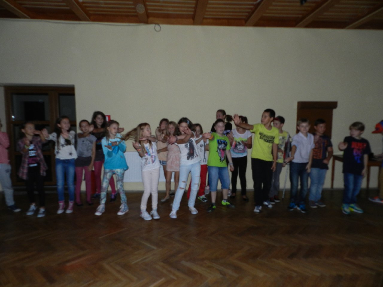 Pierwszego dnia, po zajęciach w szkole zebraliśmy się o 15:45. Wyruszyliśmy ok. 16:00. Na miejsce dojechaliśmy przed 18:15. Tuż po tym zakwaterowaliśmy się i zjedliśmy smaczny obiad. Później poszliśmy na spacer po Skorzęcinie. Następnie udaliśmy się na dyskotekę na której odbyła się „Gala Talentów” Po zabawie podekscytowani rozmawialiśmy w swoich domkach i poszliśmy spać. Drugiego dnia o godzinie 8:00 chętni zebrali się na poranne biegi. Po śniadaniu wyruszyliśmy na wycieczkę dydaktyczną do wsi Skorzęcin , łącząc edukację przyrodniczą z wypoczynkiem i turystyką. Z panem leśniczym weszliśmy do lasu, gdzie pochowany jest niemiecki leśniczy. Zobaczyliśmy jego nietypowy pomnik – pięć drzew różnej grubości, symbolizujących ,,grube i chude” lata zmarłego. Po powrocie zjedliśmy obiad i bawiliśmy się w podchody. Podczas których musieliśmy wykazać się wiedzą z zakresu zdrowego stylu życia i właściwego odżywiania się. Odnaleźliśmy skarb – czekoladowe monety. Zanim wróciliśmy do ośrodka podziwialiśmy jezioro i zamaczaliśmy w nim stopy. Na miejscu, wśród drzew zjedliśmy kiełbaski z grilla. Po rozmowach w pokojach zasnęliśmy.Ostatniego dnia o godzinie 8:00 odbyły się biegi, a o 8:30 zjedliśmy śniadanie. Następnie spakowaliśmy się, posprzątaliśmy pokoje i wsiedliśmy do autobusu. Około 14:05 byliśmy pod szkołą.Wszyscy świetnie się bawili. Nie możemy doczekać się kolejnych takich wyjazdów. Paniom serdecznie dziękujemy za opiekę i wiele miłych wrażeń.