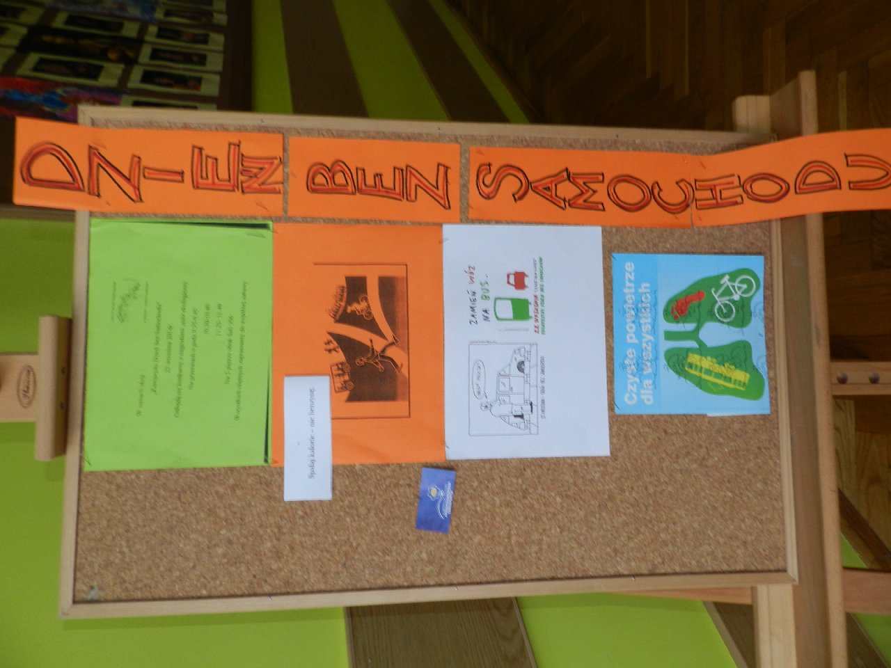 22 września - Europejski Dzień bez Samochodu. Akcja ma celu zachęcanie do korzystania z alternatywnych środków komunikacji, aby przyczynić się do mniejszego zanieczyszczenia środowiska naturalnego. Wszyscy uczniowie, którzy tego dnia przybyli do szkoły na pieszo bądź na rowerze otrzymali bileciki zwalniające z odpytywania w tym dniu. Bileciki były pomysłem SU, który przygotował na przerwach konkursy z nagrodami i quiz ekologiczny. Tak spędzony dzień w naszej szkole miał na celu promowanie zachowań ekologicznych wśród uczniów "jedynki".