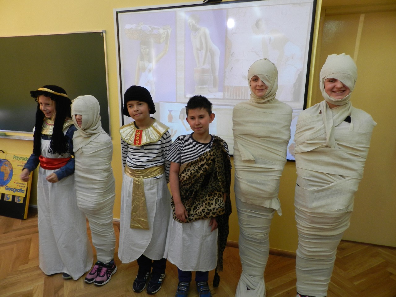 Wszyscy chętni uczniowie klas piątych 25 września przekraczając próg klasy historycznej mogli odbyć podróż do Starożytnego Egiptu. Lekcja muzealna, której tematem jest Śmierć i życie w Starożytnym Egipcie wpisała się w proces dydaktyczny. Tego typu lekcja rozwija i rozbudza zainteresowania uczniów, jest to wielki potencjał poszerzania wiedzy. Forma lekcji warsztatowa sprawia, że uczniowie aktywnie uczestniczą, wcielają się w ważne postacie