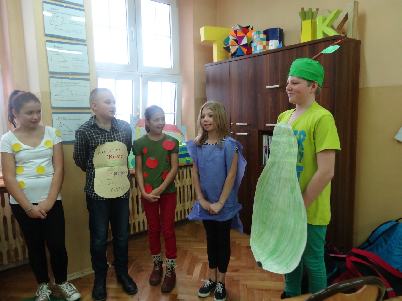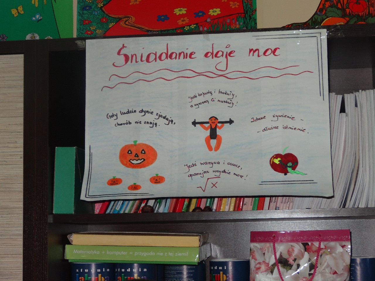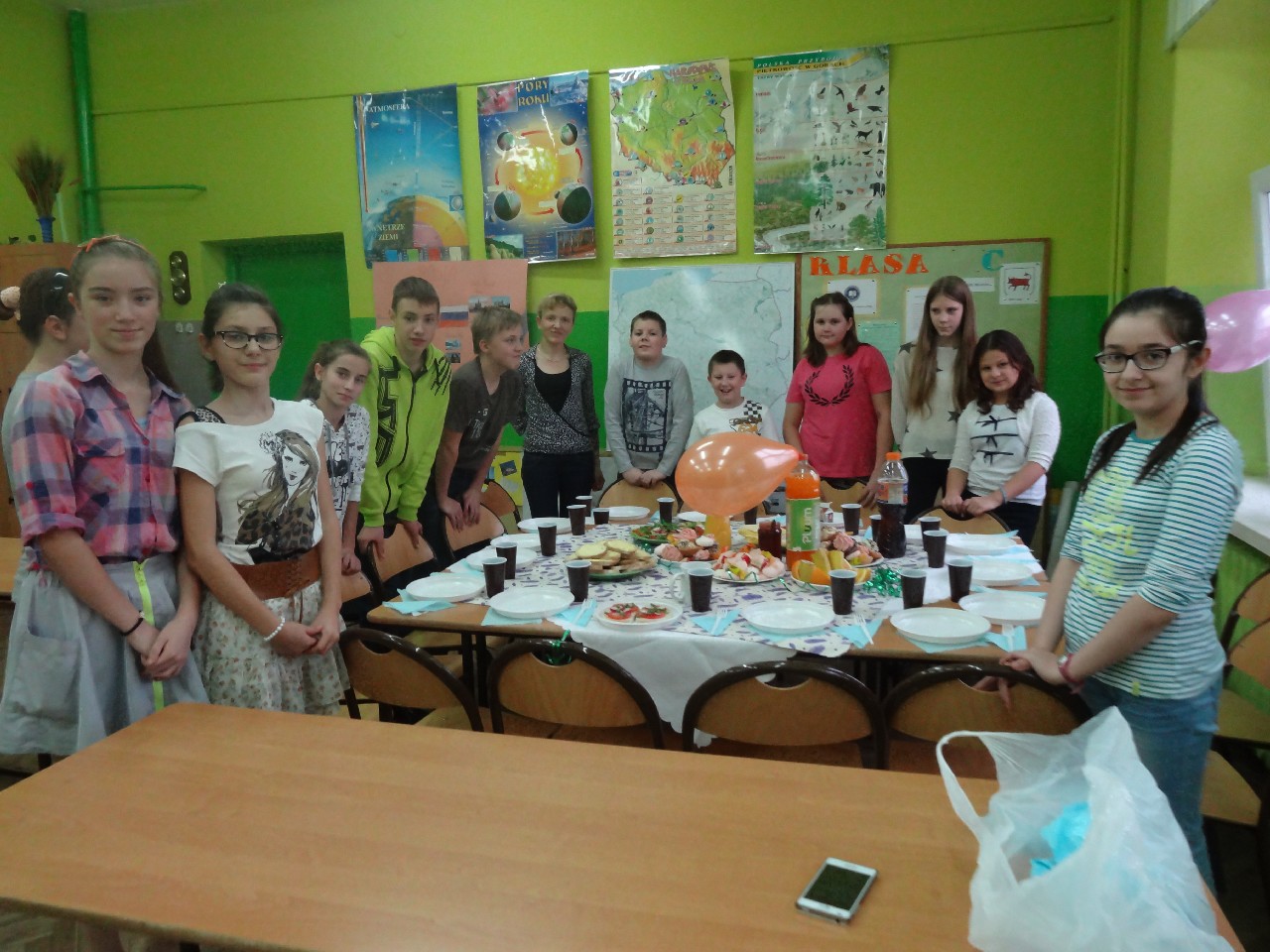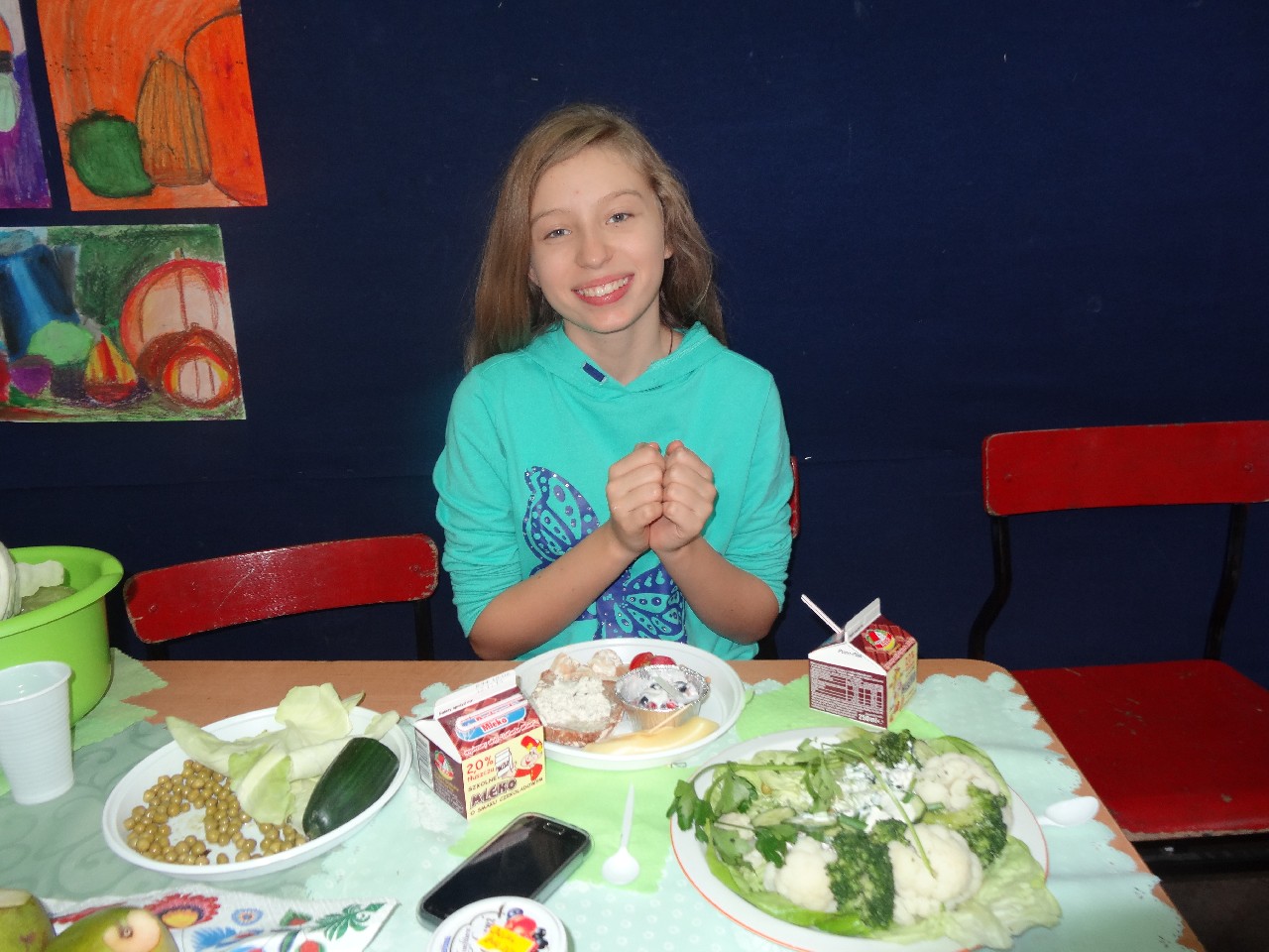 Podzieleni na grupy przyrządziliśmy pełnoziarnisty chleb z warzywami takimi jak: pomidory, sałata, rzodkiewki oraz szczypiorek. Dodaliśmy również jajka, twarożek, ser, a także wędlinę. Najważniejsze, żeby było zdrowo! Uczennice: Weronika Dziamara i Agata Drabina przeczytały fraszkę Jana Kochanowskiego pt. Na zdrowie. Po 45 minutach przystroiliśmy stoły i udaliśmy się zobaczyć jakimi posiłkami zaskoczą nas inne klasy. Nie zawiedliśmy się, tam również było apetycznie. Po dzwonku wróciliśmy do swoich stolików i oczekiwaliśmy na komisję. Po jej wizycie skonsumowaliśmy kromki. Później rozwiązaliśmy krzyżówki, wykreślanki i zapisaliśmy przepisy na sałatki. Nasza sala wyglądała pięknie. Kolorowe obrusy, papierowe talerzyki, serwetki, aż cieszyły oczy. Następnie poszliśmy częstować innych uczniów, a przewodnicząca klasy wraz z członkinią Samorządu Uczniowskiego rozdały nauczycielom jabłka. Po jakimś czasie z żalem serca musieliśmy schować kanapki, sprzątnąć stoły i klasę oraz udać się na kolejną lekcję. Wszystkim nam się podobało, a posiłek bardzo smakował. Będziemy czekać na taką akcję za rok. Jest to wspaniały pomysł zachęcać uczniów, zarówno małych jak i dużych do zdrowego stylu życia.