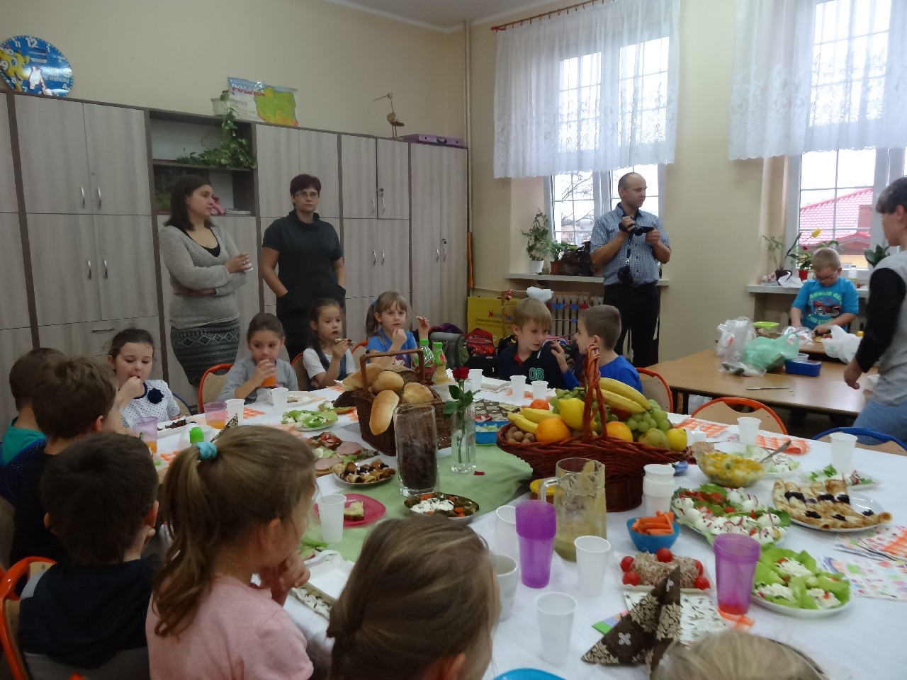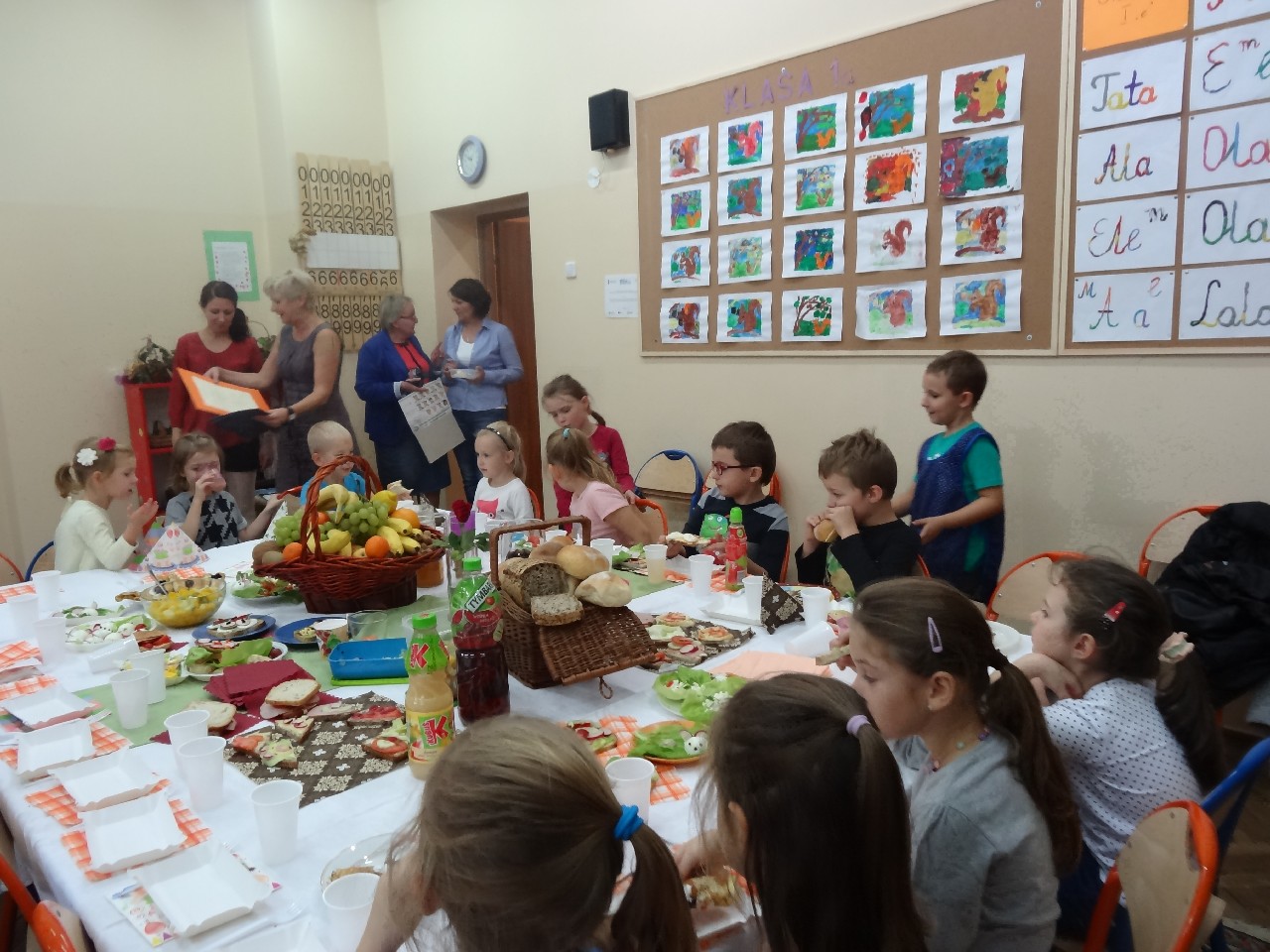 07.11.2014r. w piątek, odbyło się klasowe śniadanie. Do akcji po raz kolejny przystąpiła cała szkoła. Śniadanie to najważniejszy posiłek dnia. Dostarcza nam energii niezbędnej do funkcjonowania. Powinniśmy je jeść zawsze przed wyjściem do szkoły. Z tych powodów wszyscy zorganizowaliśmy wspólny posiłek. Na 3 i 4 godzinie lekcyjnej (9:45 - 11:25) uczniowie klasy 5e przygotowali kanapki.