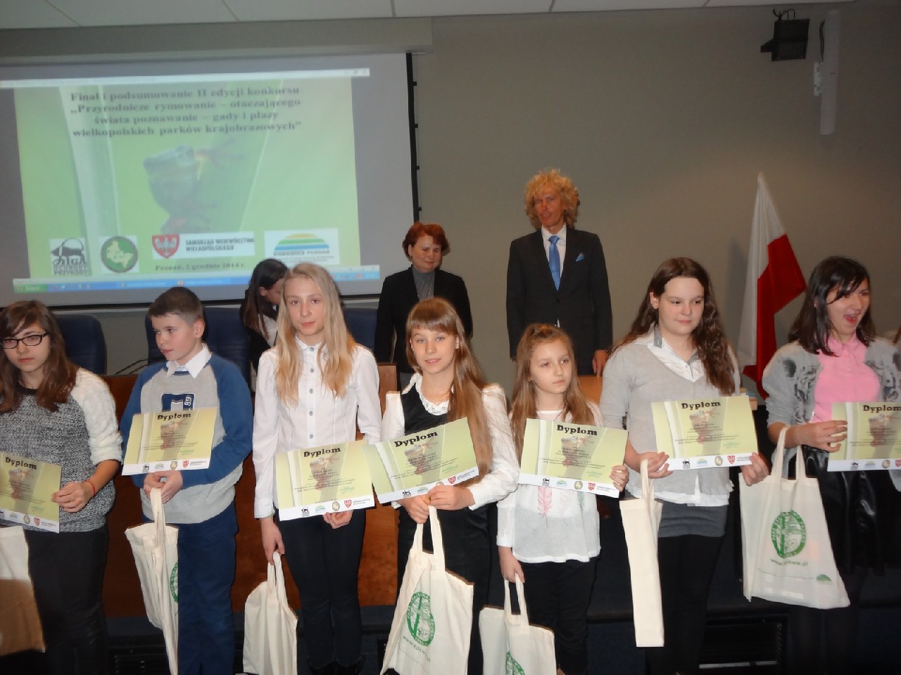 2 grudnia w Sali Sesyjnej Wielkopolskiego Urzędu Wojewódzkiego w Poznaniu odbyło się uroczyste wręczenie dyplomów i nagród w konkursie przyrodniczo – artystycznym zorganizowanym przez Zespół Parków Krajobrazowych Województwa Wielkopolskiego i Wojewódzki Fundusz Ochrony Środowiska i Gospodarki Wodnej w Poznaniu pt. „Przyrodnicze rymowanie – otaczającego świata poznanie – gady i płazy wielkopolskich parków krajobrazowych”.